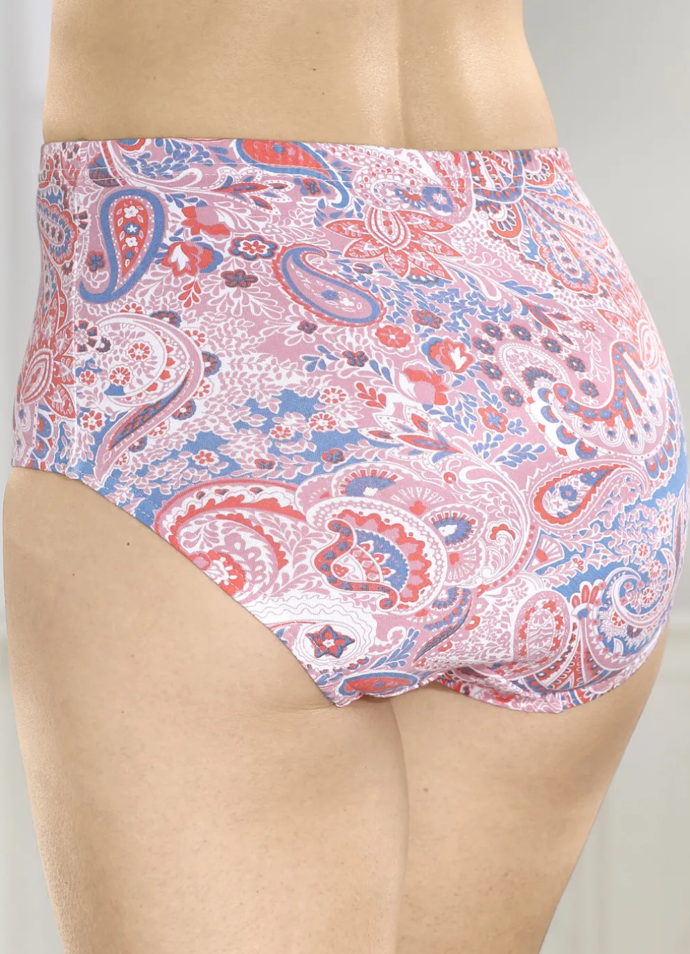 Roséfarbener Slip mit farbharmonischem Druckdessin sowie Gummizug im Bund.