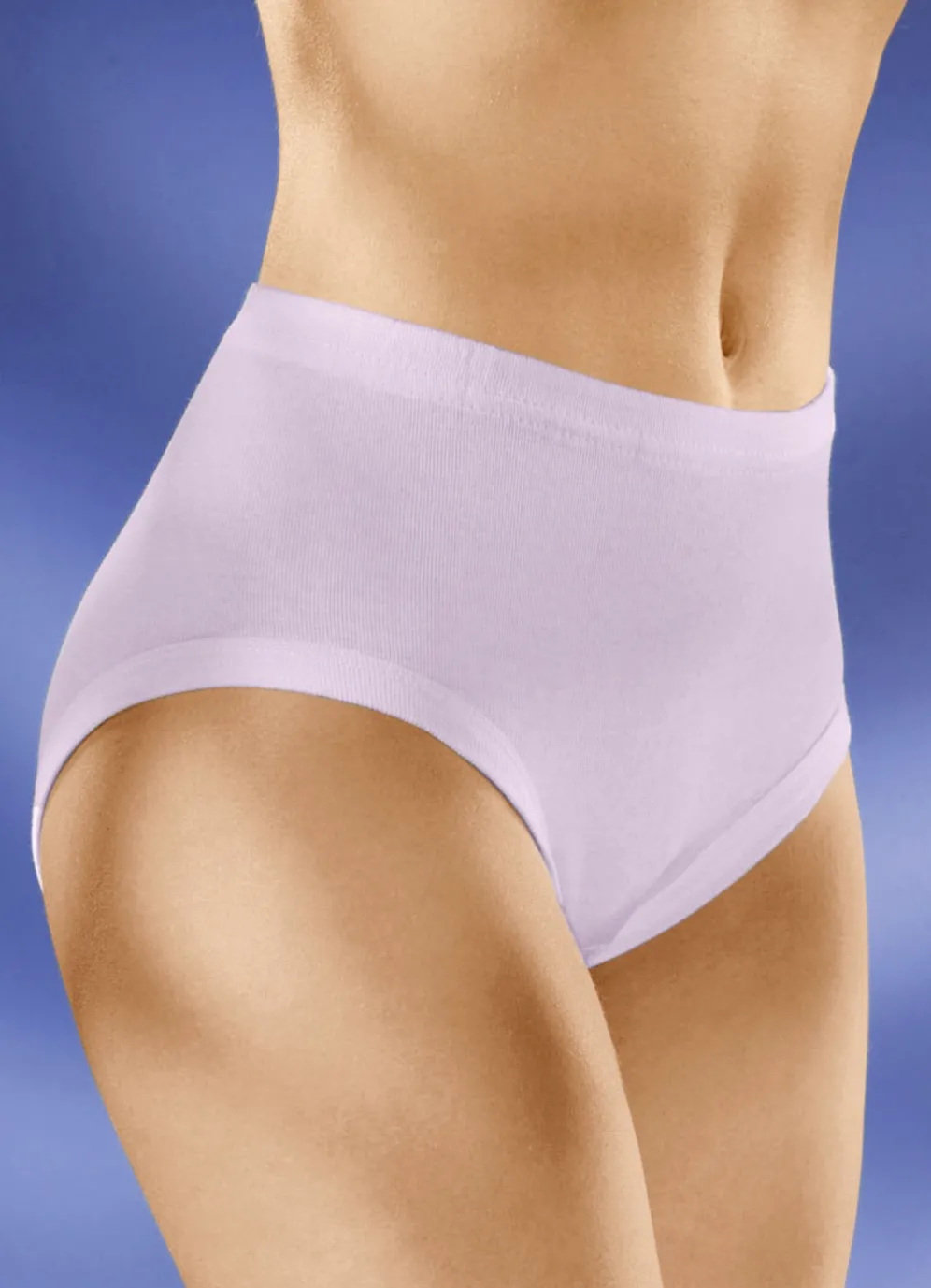 Fünferpack Slips mit Gummizug in 2X Mauve, 2X Indigo, 1X Weiss und in Größe 46.