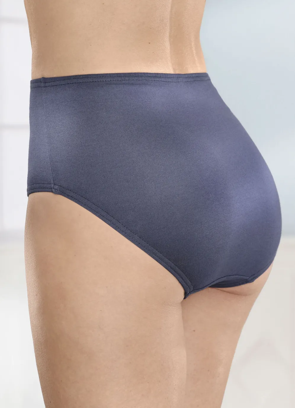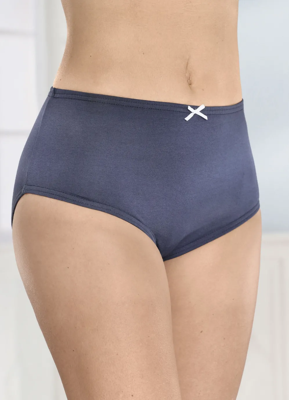 Fünferpack Slips mit Gummizug im Bund in 3X Marine, 2X Weiss und in Größe 40.