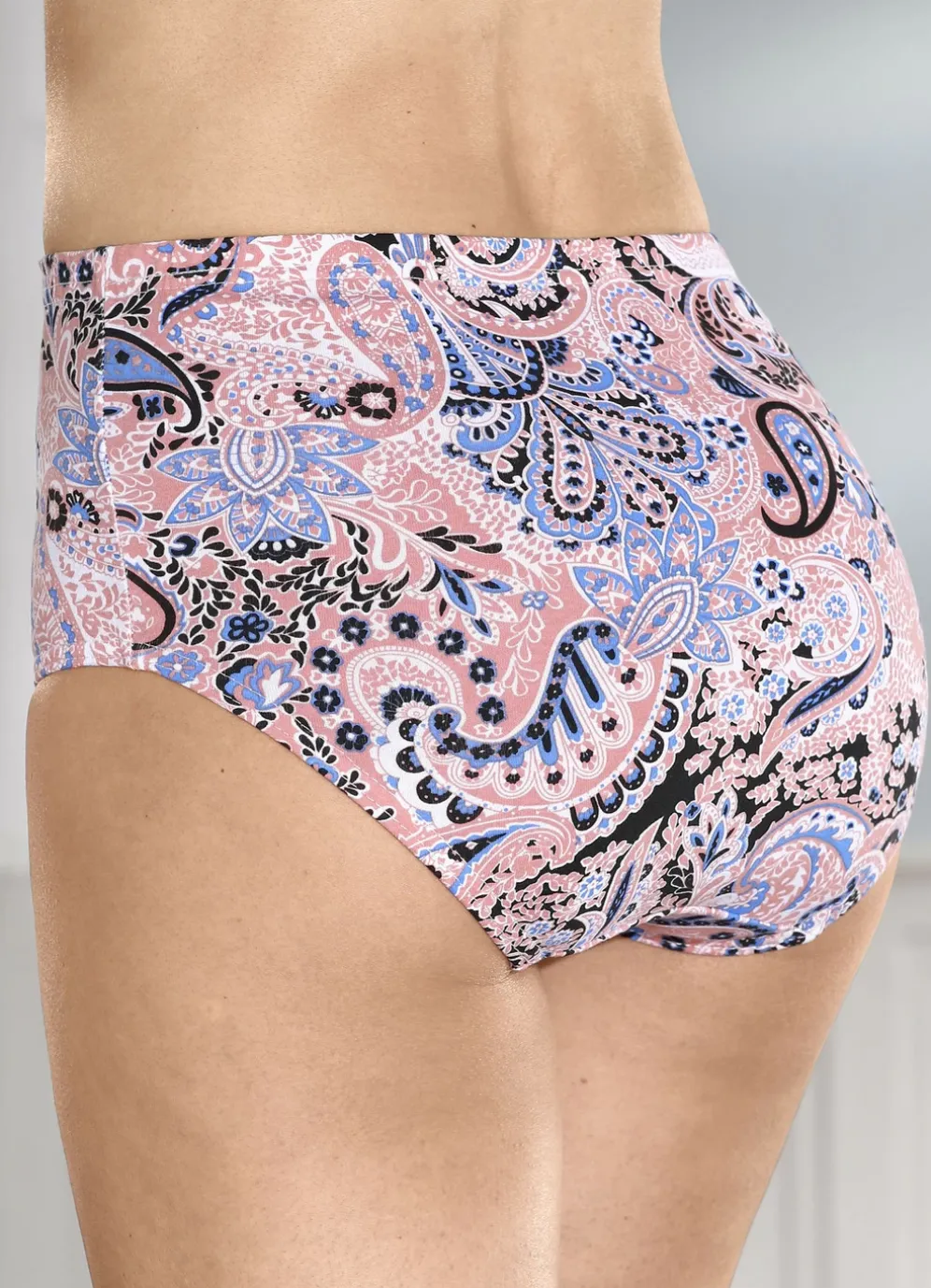Fünferpack Slips mit Paisley -Dessin in Apricot-Weiss-Bunt und in Größe 38.