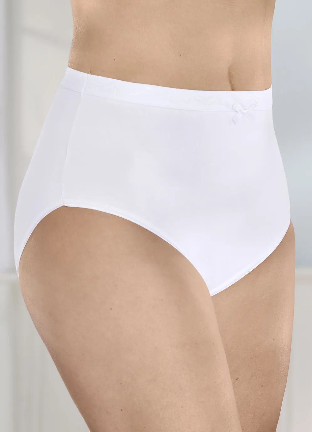 Fünferpack Slips mit strukturiertem Elastikbund in Weiss und in Größe 40.