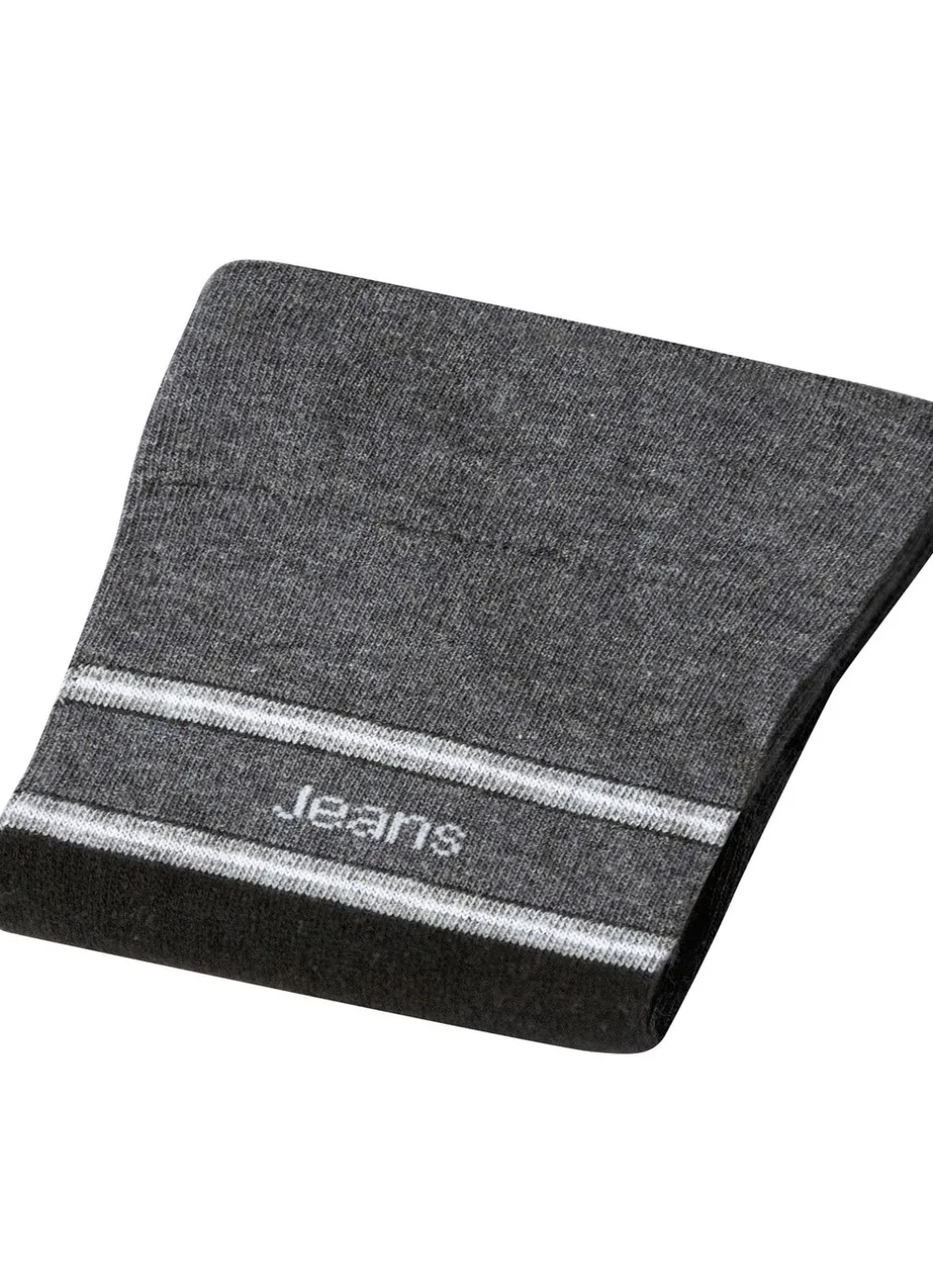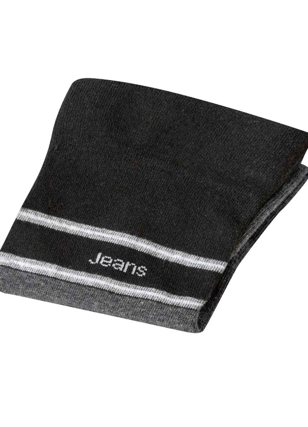 Fünferpack Socken mit druckfreiem Bund in 3X Schwarz-Grau Meliert, 2X Grau Meliert-Schwarz und in Größe 2 (Schuhgröße 43-46).