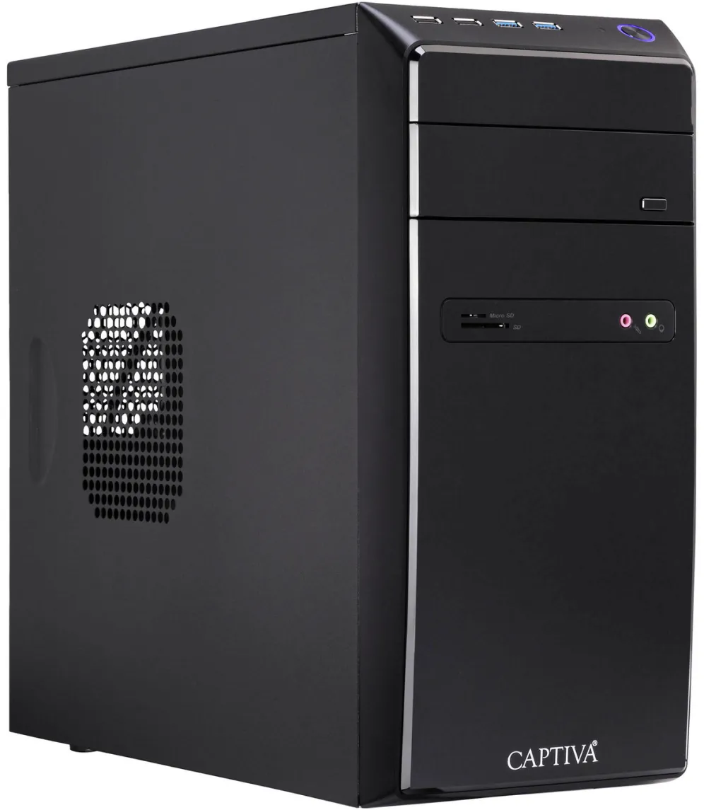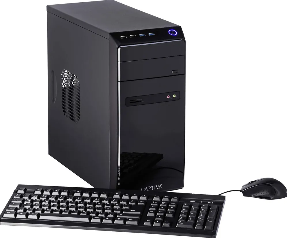 Captiva I81-132. Der Einsteiger! PC-Rechner-Sets mit unterschiedlicher Ausstattung und optimierter Nutzer-Software. Das Set besteht aus: Rechner, Tastatur, Maus und vorinstallierter Software (Windows 11 Home 64 bit), welche speziell an die Anforderungen für eine einfache und simple Benutzung mit größerer und besserer Darstellung und Werkzeug wie Bildschirmlupe angepasst wurde.