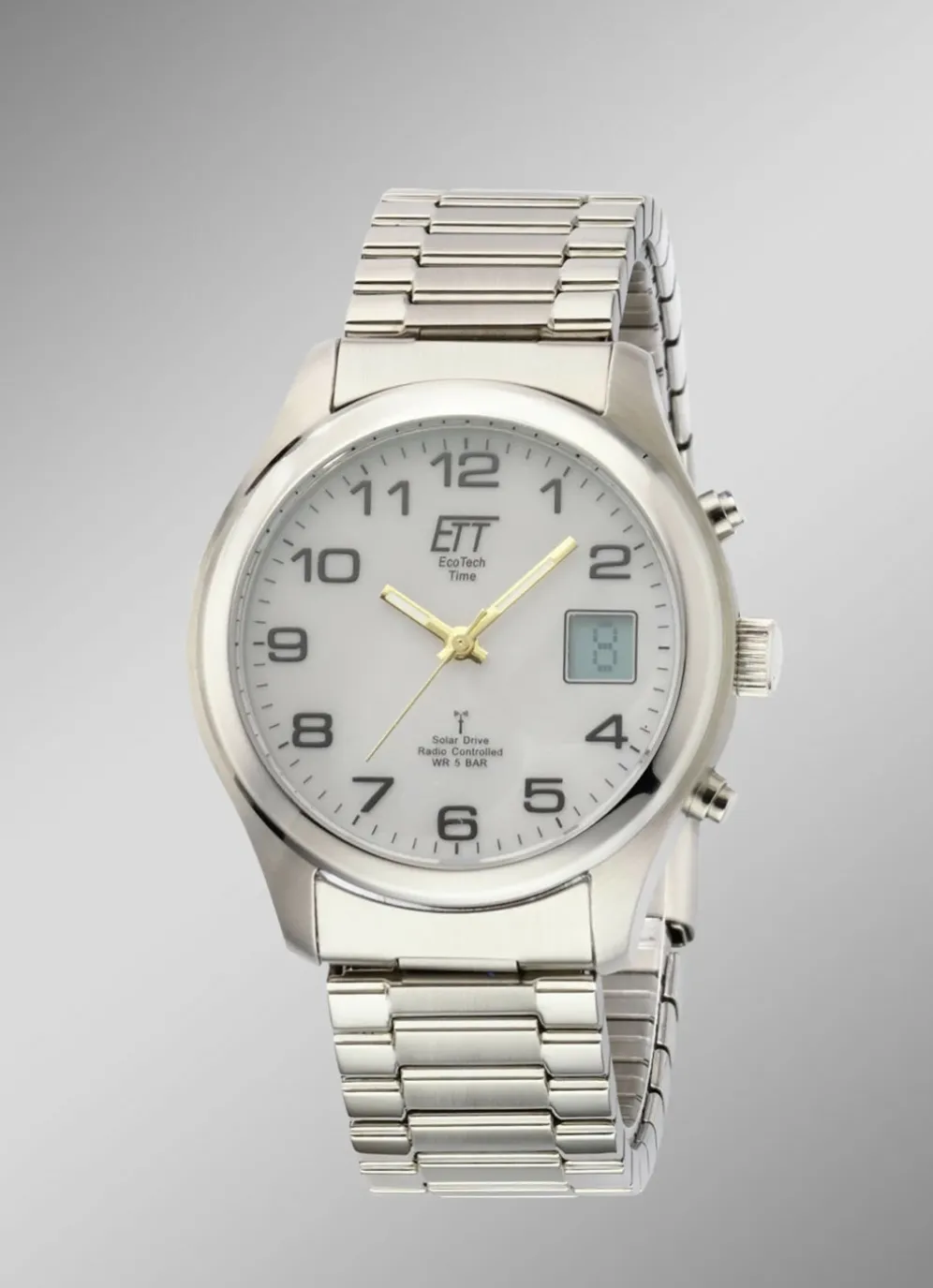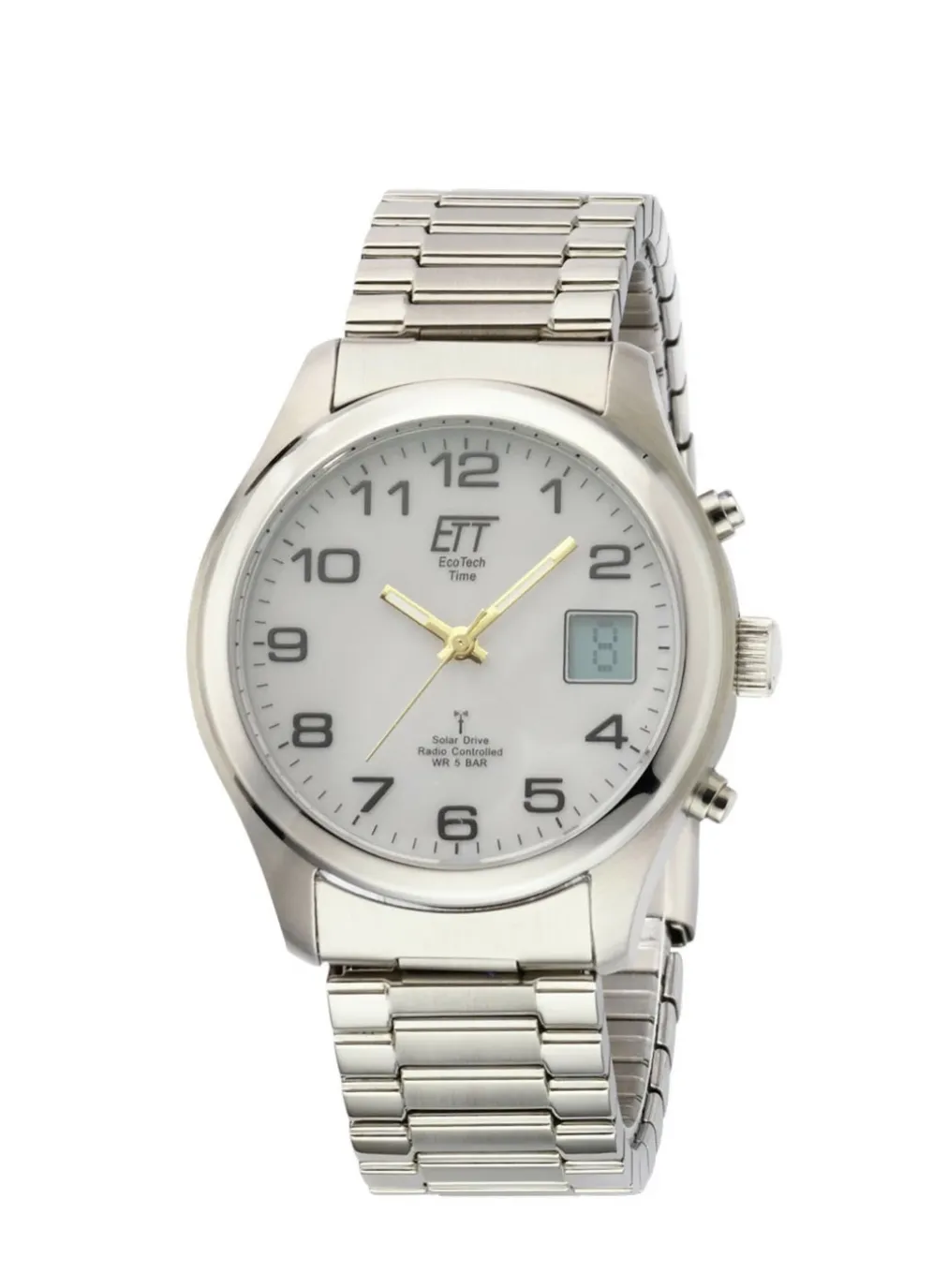 Die ETT Solar Drive Funk Basic Herrenuhr mit braunem Lederband überzeugt mit ihrem klassischem Design. Der ewige Kalender macht die ETT Solar Drive Funk Basic Herrenuhr zu einem praktischen Begleiter. Dank Solar Funk Antrieb geht die ETT Solar Drive Funk Basic Herrenuhr stets genau und benötigt keinen Batteriewechsel.