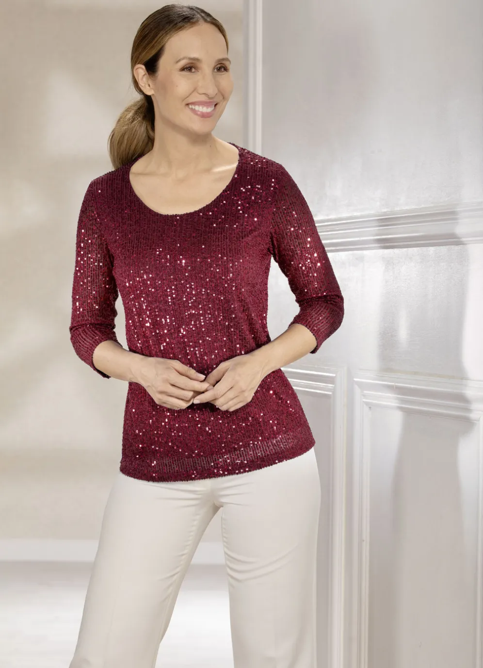 Glänzende Shirt-Tunika mit rundem Halsausschnitt sowie 3/4-langen Ärmeln.