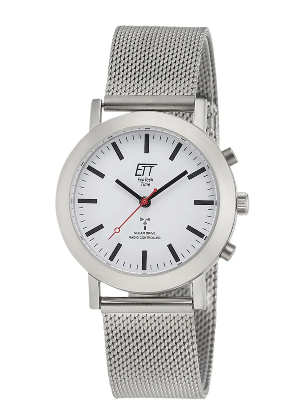 Funkgesteuerte Herrenuhr mit Solar-Antrieb und im modernen Design. Diese Solar Herrenuhr verfügt über ein Gehäuse aus Edelstahl und ist deutlich ablesbar. Besonders markant ist der rote Sekundenzeiger. Über das LCD Display kann wahlweise das Datum, Tag, Sekunde und der Signalempfang angezeigt werden. Die Uhr ist mit einem Solarwerk ausgestattet, das ausschließlich durch Lichtenergie betrieben wird. Nie wieder Batteriewechsel.