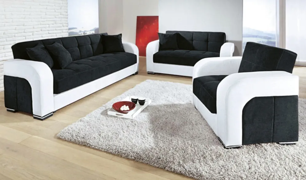 Funktions-Polstermöbel aus hochwertigem Kunstleder in der Ausführung Polstergruppe, 3-teilig und in Weiss-Schwarz.