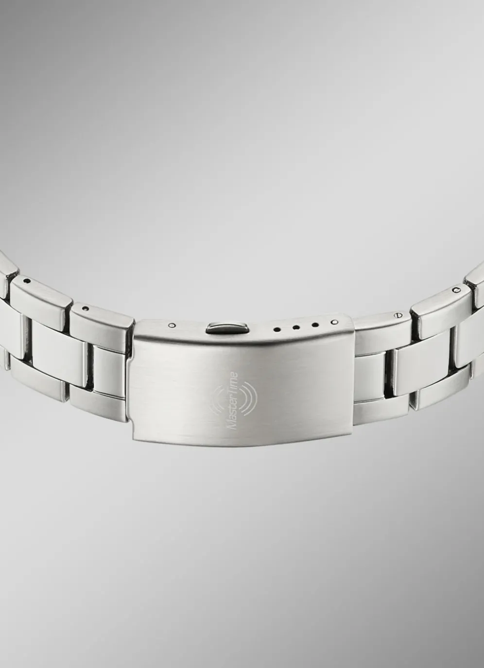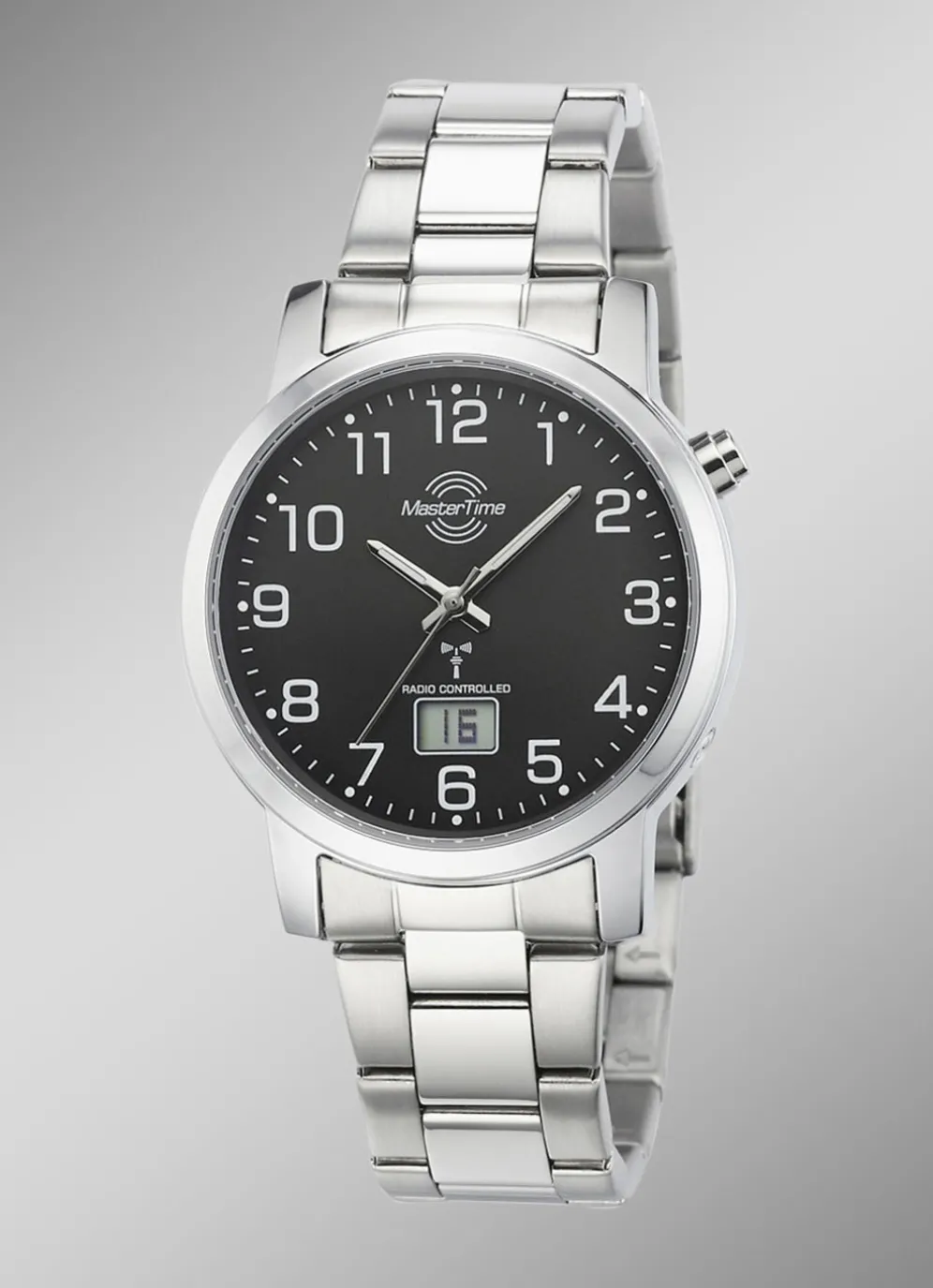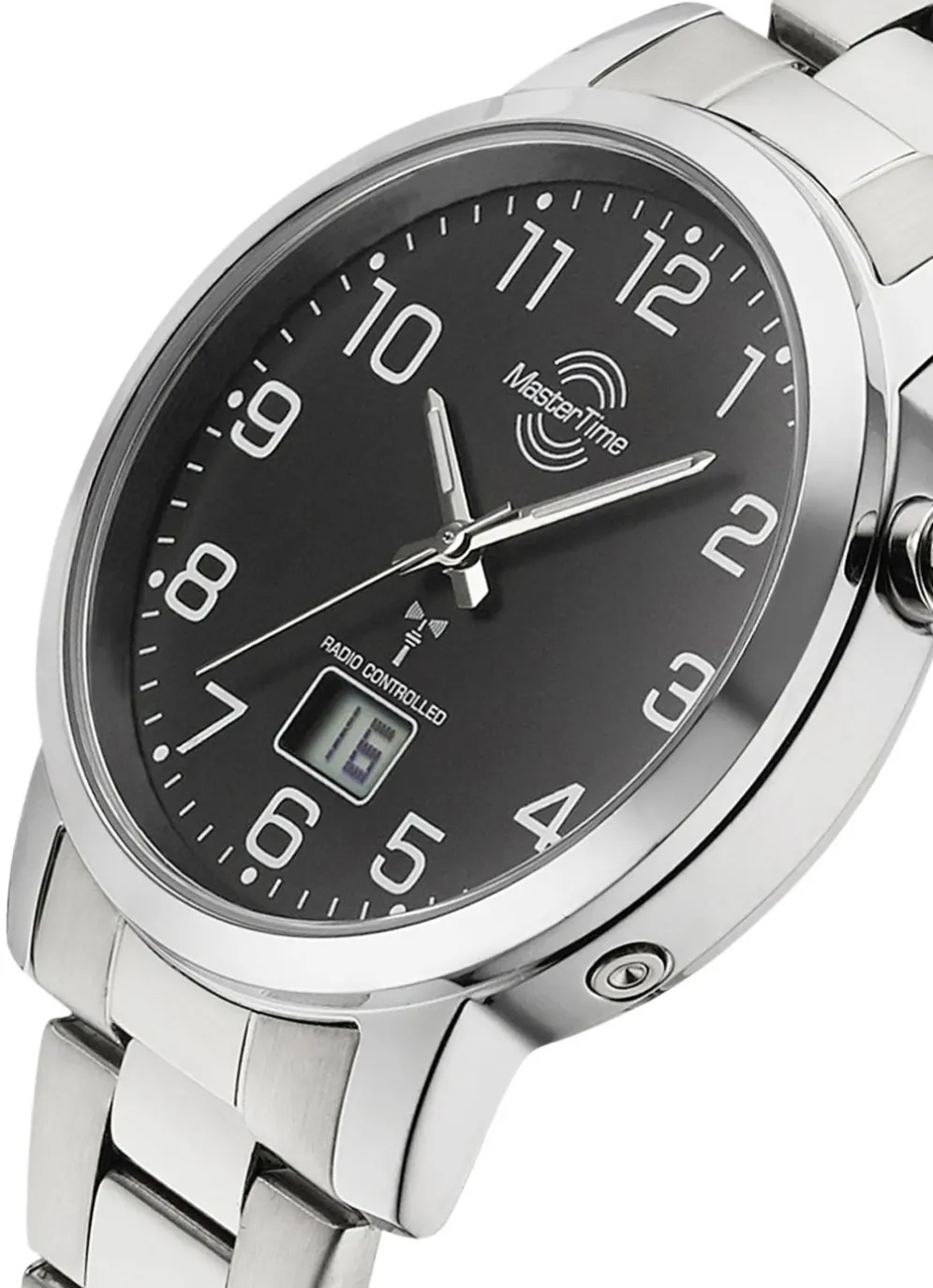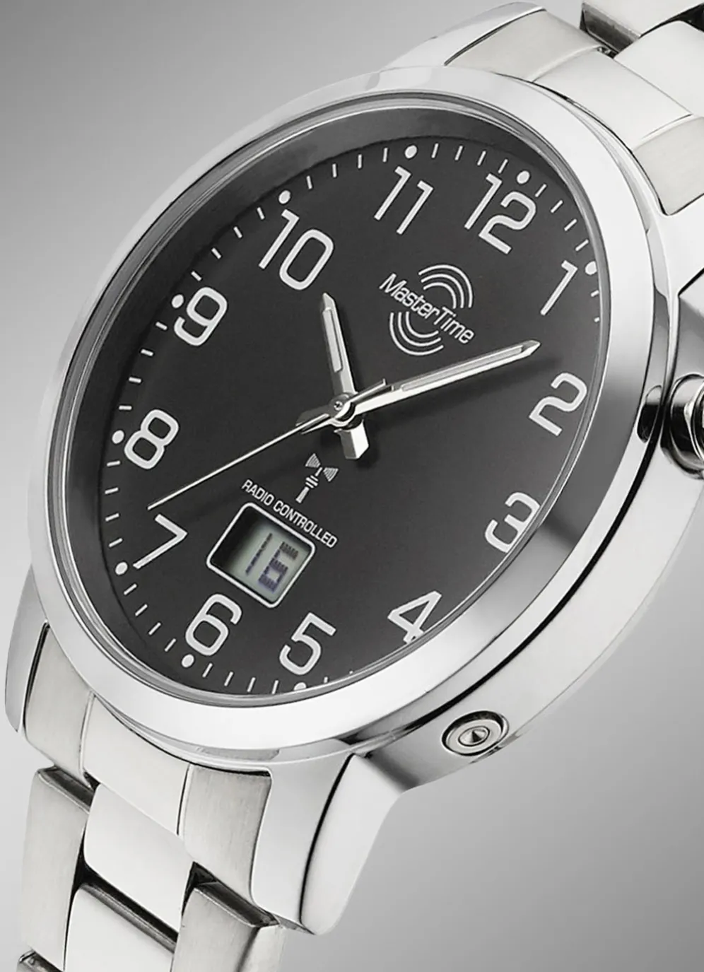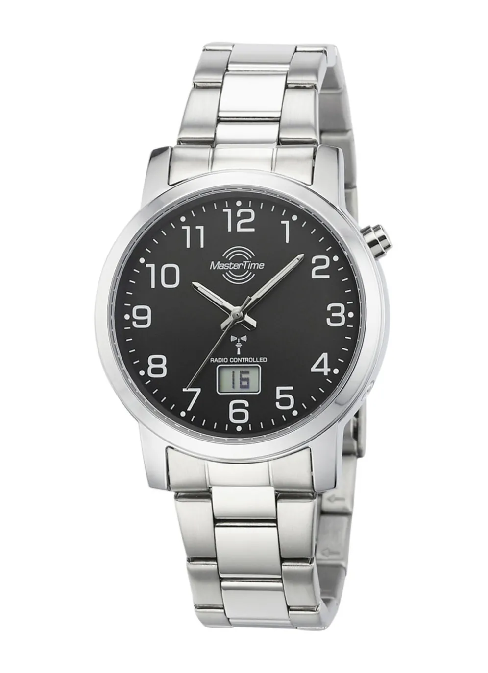 Diese zuverlässige Funkuhr für Herren besitzt ein übersichtliches, schwarzes Zifferblatt mit digitaler Anzeige mit Kalenderfunktion. Das Edelstahlarmband ist mit einer Sicherheitsfaltschließe ausgestattet. Die Herrenuhr hat einen Gehäusedurchmesser von 42 mm ist bis 3 bar wasserdicht.