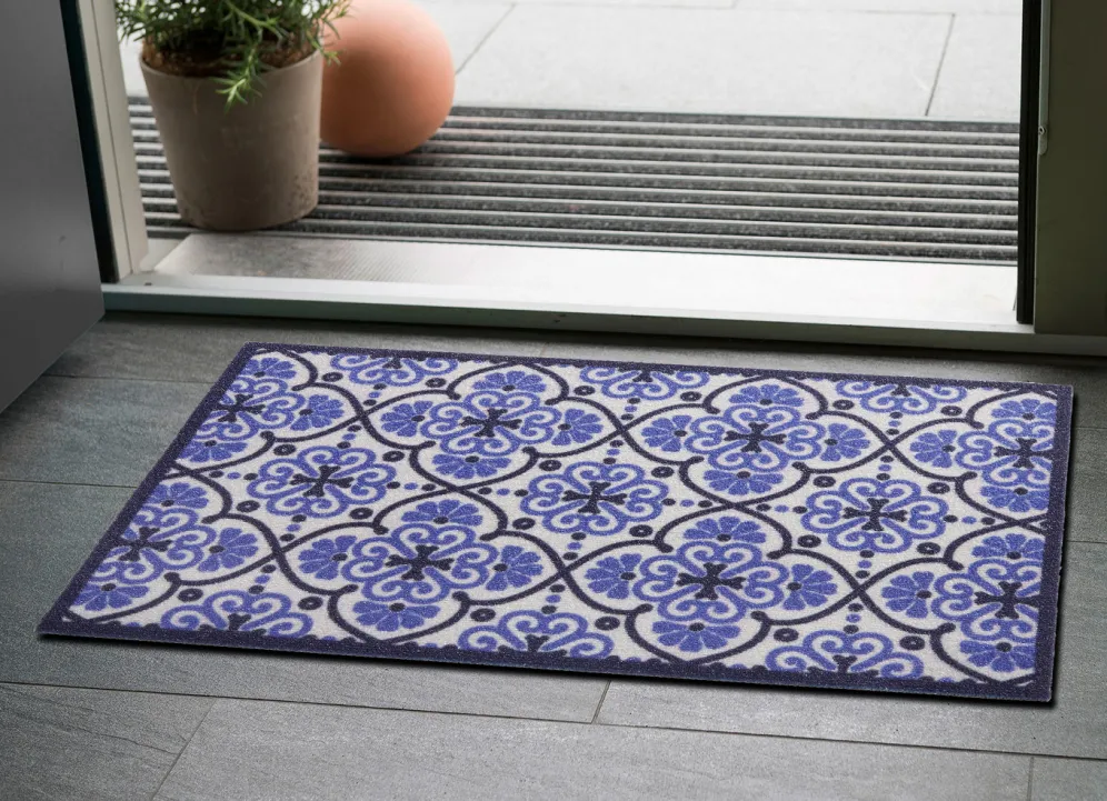 Fußmatte mit rutschhemmender Latex-Rückseite in Größe 101 (40x 60 cm) und in Blau.