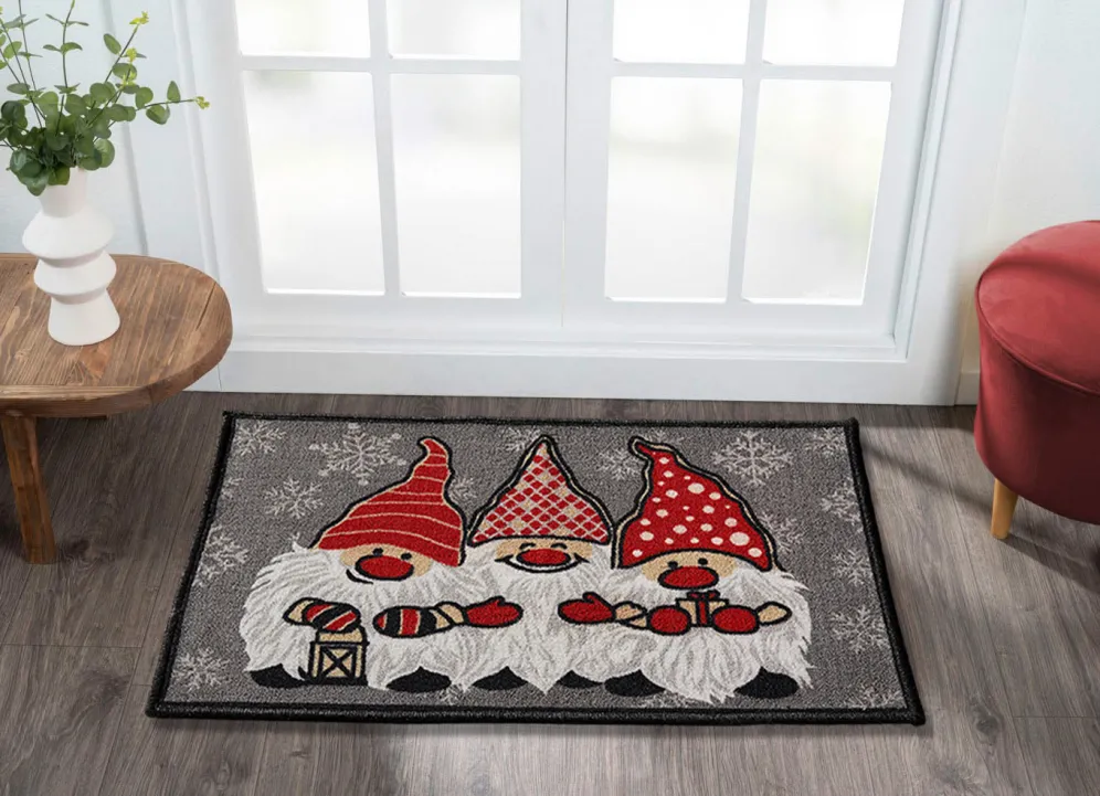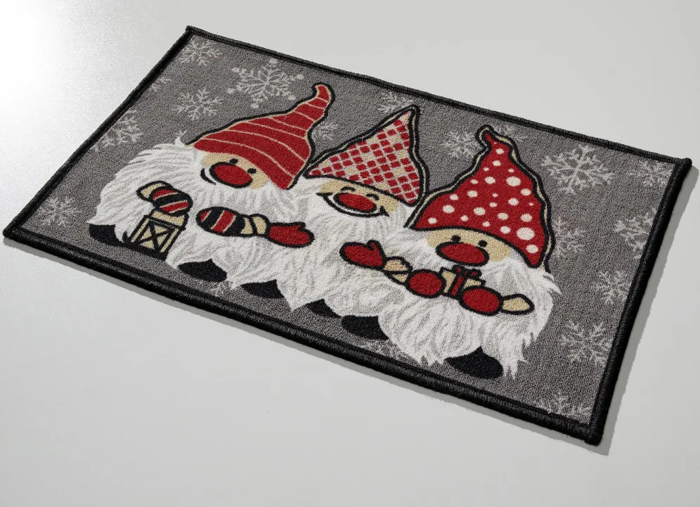 Drei weihnachtliche Wichtel heißen Ihre Besucher auf dieser Fußmatte willkommen! Mit rutschfester Rückseite. Die Qualität: 100% Polyamid. Maße: 50×80 cm