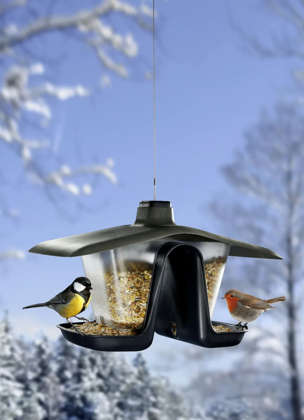 Ein attraktives Zuhause für Vögel ist dieses Vogelhäuschen. Dank seiner transparenten Außenwände aus Polypropylen sehen Sie den Futterstand, das Dach schützt vor Regen. Durch kleine Löcher kann Regenwasser problemlos ablaufen. Per Schnur aufhängen oder einfach über einen dicken Ast oder Geländer hängen.