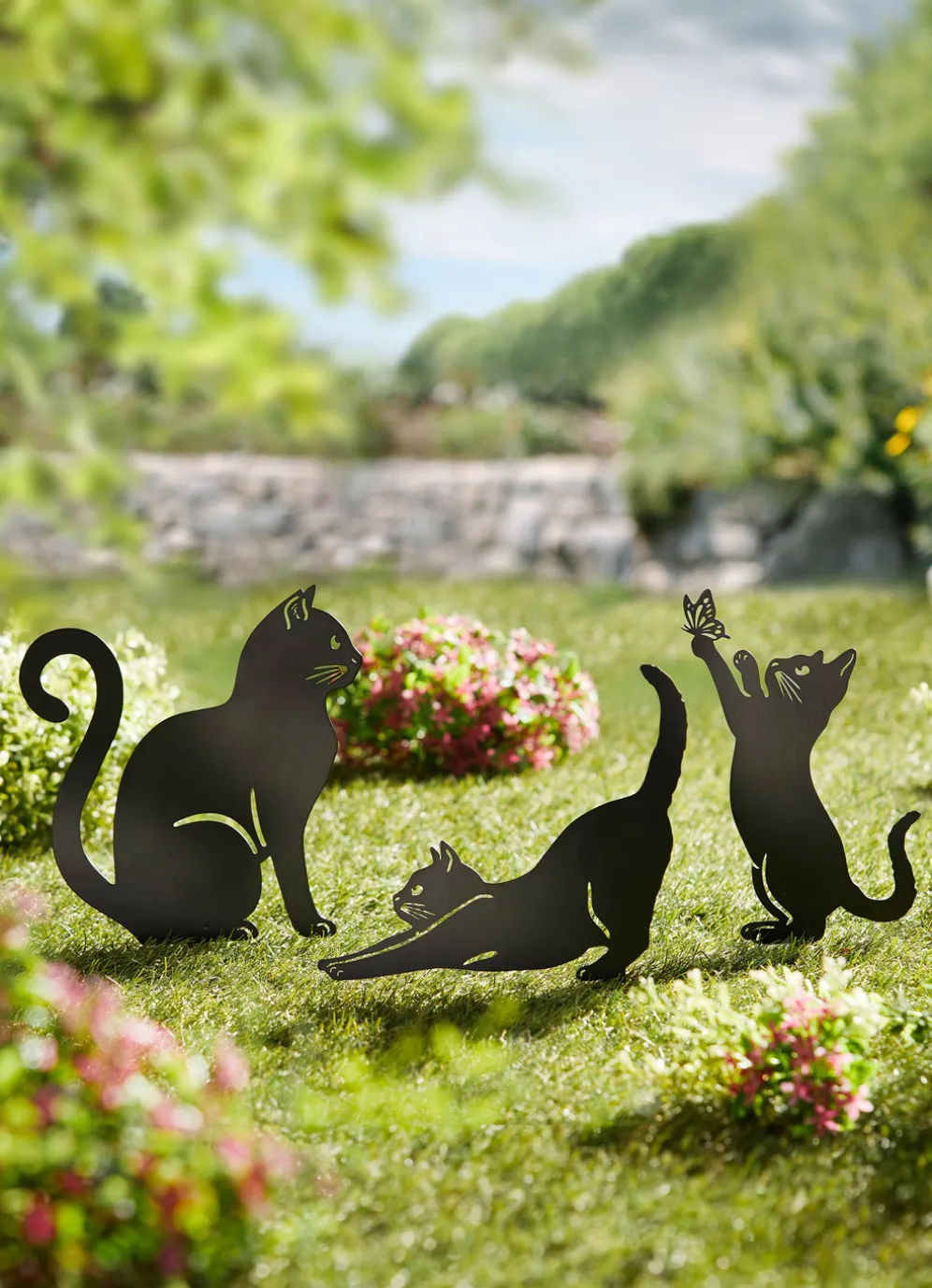 Diese wunderschönen Katzen-Silhouetten aus Metall sind kinderleicht in die Erde oder einen Blumenkasten zu stecken und können so ganz variabel platziert werden.
