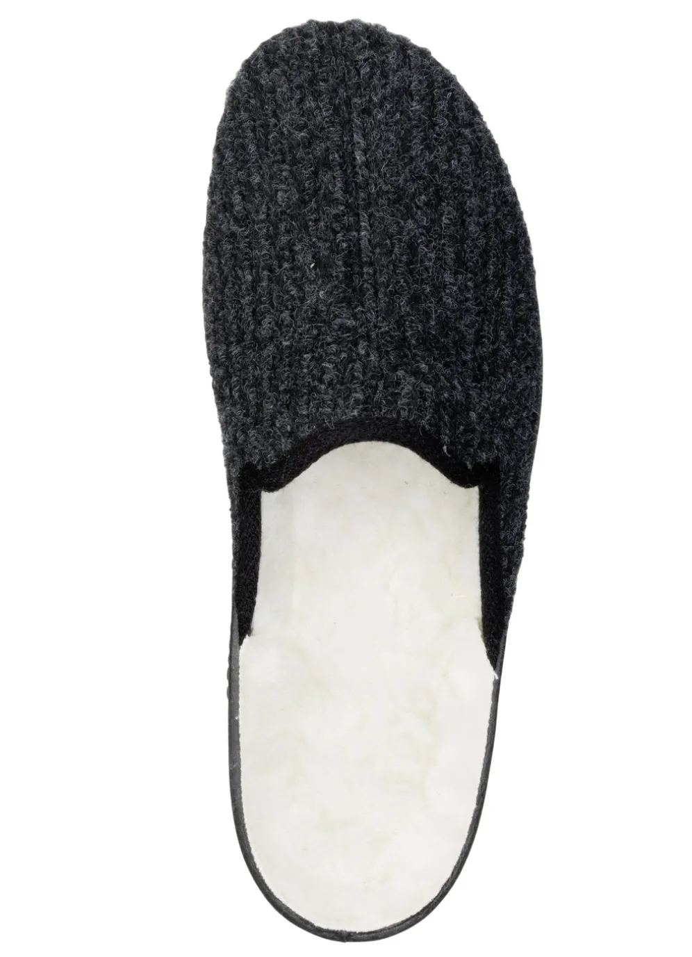 Gefütterte Herren-Hausschuhe, mit Schurwolle in Schwarz und in Größe 43.