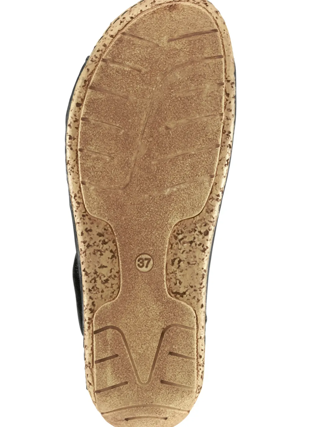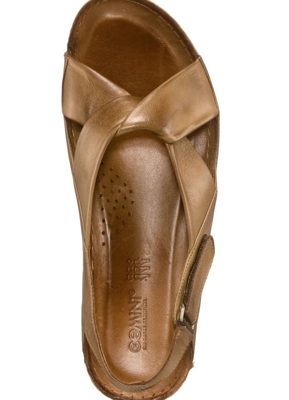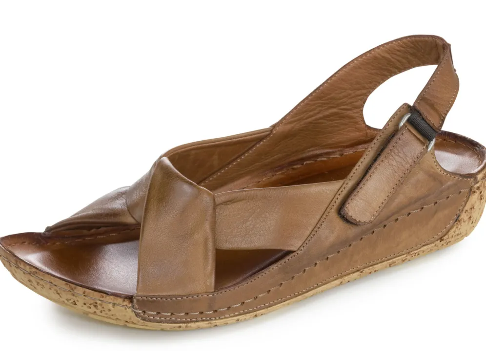 Sandalen aus teilweise schattiertem Rind-Nappaleder: Weite G, verstellbare Klettspange mit seitlichem Gummizug, Lederfutter, gepolstertes Lederfußbett, superleichte PU-Laufsohle sowie 25 mm Keilabsatz