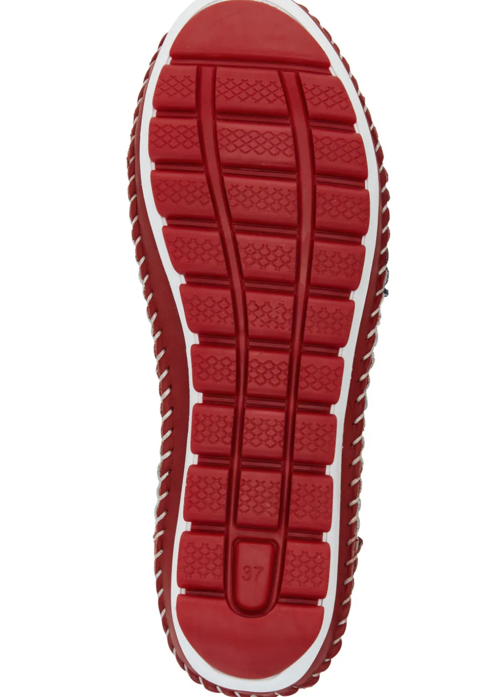 Gemini, klassische Damen-Slipper, Weite G, mit herausnehmbarem Fußbett in Weiss-Rot-Marine und in Größe 42.