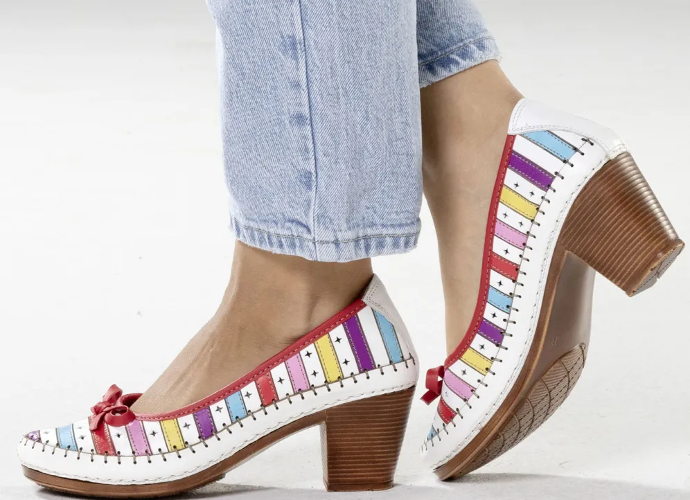 Gemini, modische Damen-Pumps, Weite G, aus Leder in Weiss-Multicolor und in Größe 42.
