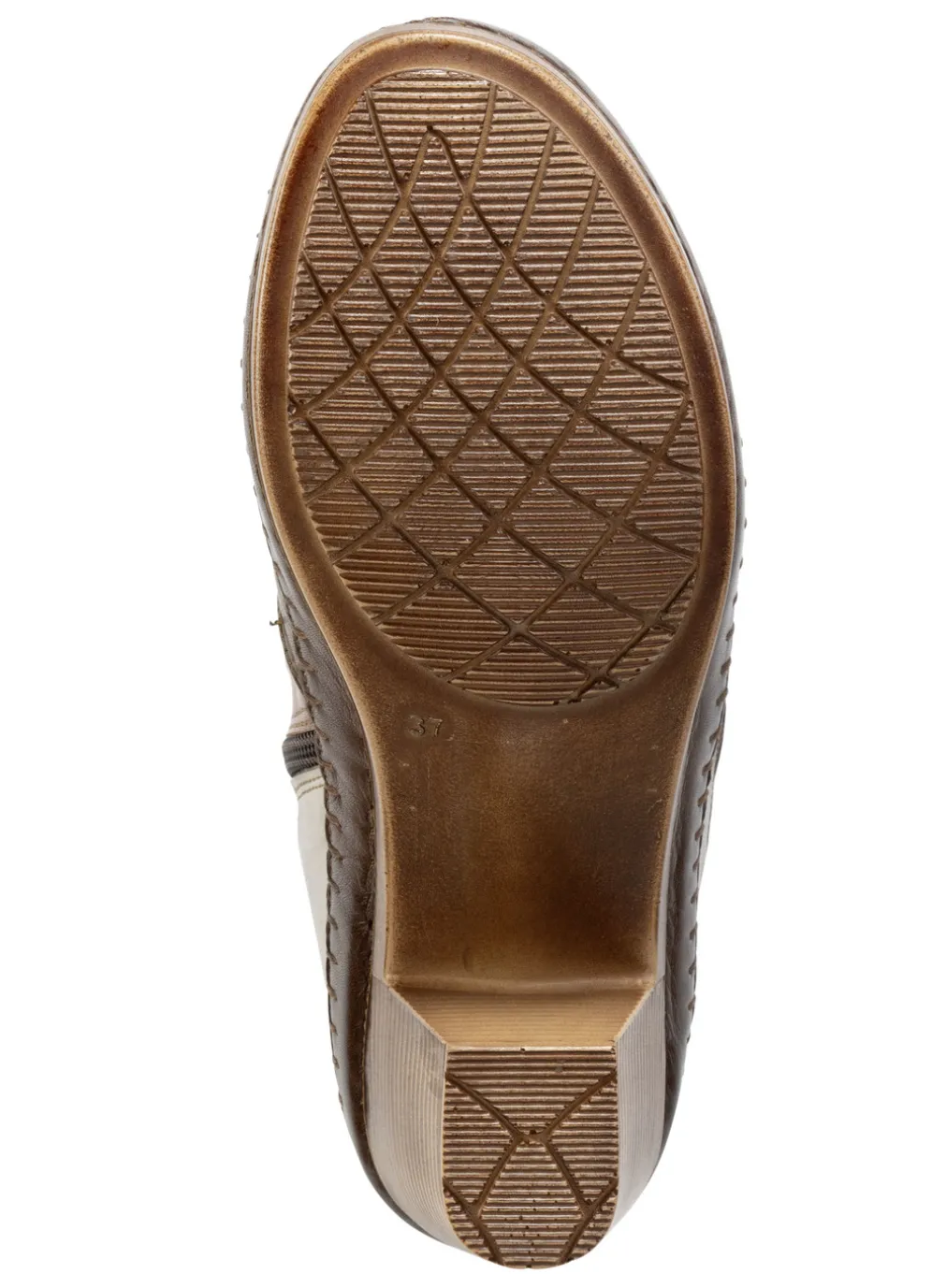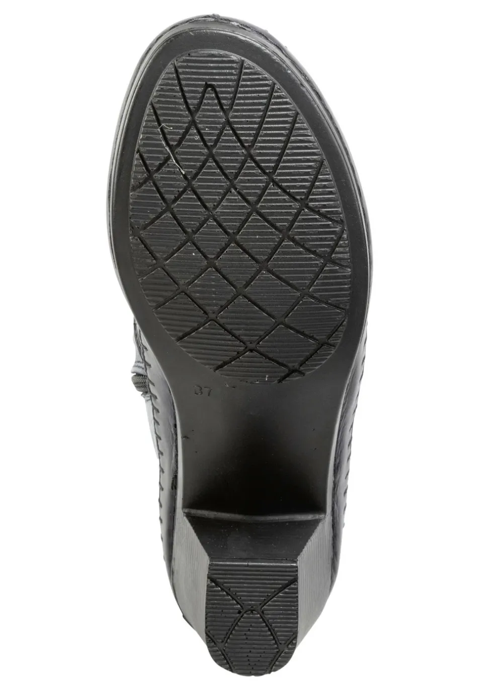 Stiefeletten im Patchwork-Stil, aus genarbtem Rind-Nappaleder, mit Innenreißverschluss und Seitengummizug: Weite G, wärmendes Textilfutter, gepolsterte Decksohle, superleichte PU-Riffelsohle, 60 mm Absatz. Schafthöhe ca. 13 cm