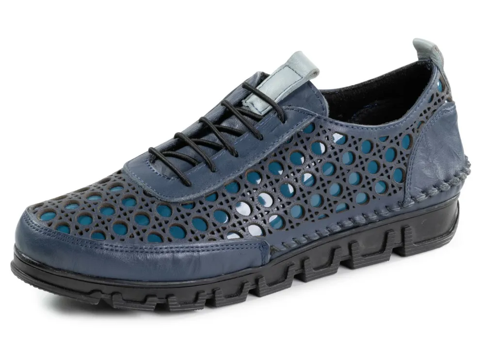 Gemini Schnürschuh aus gelochtem Nappaleder in Blau und in Größe 42.