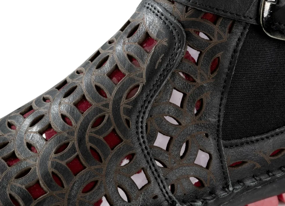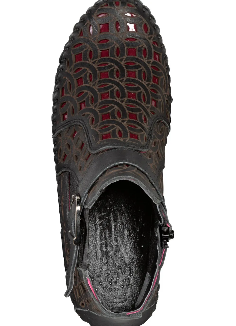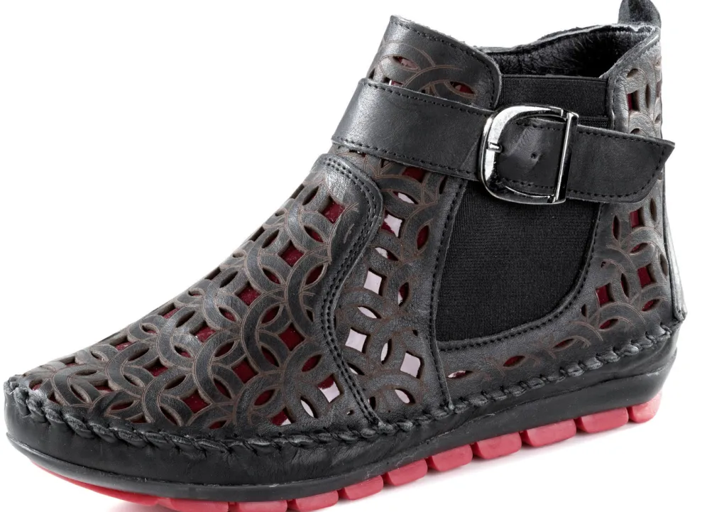 Gemini, sommerliche Damen-Boots, Weite G, mit herausnehmbarem Fußbett in Schwarz-Rubinrot und in Größe 41.