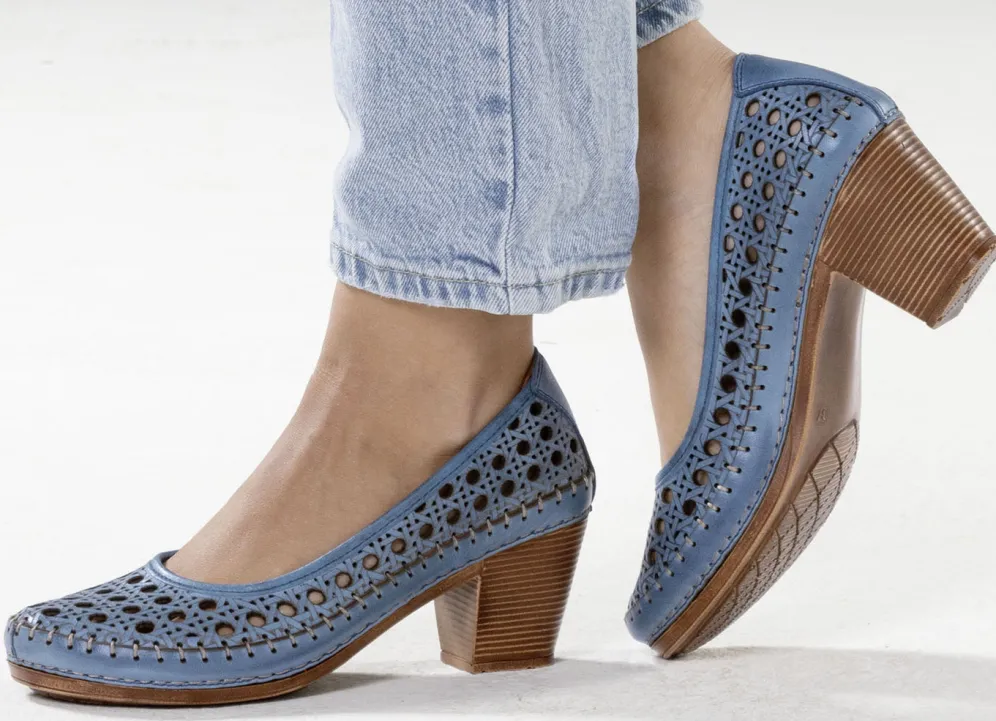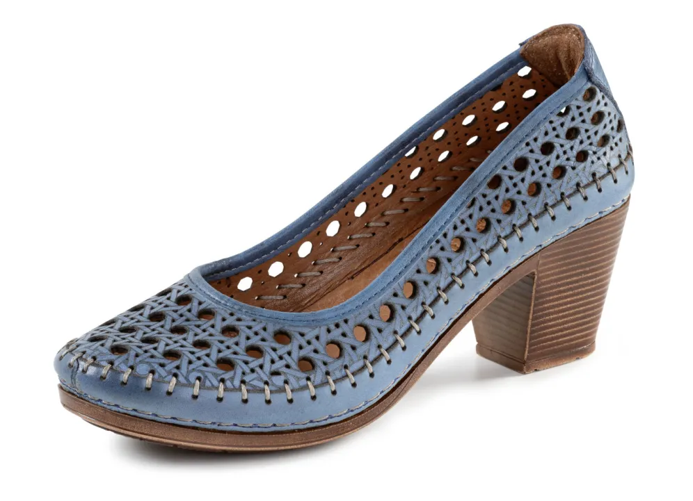 Gemini, sommerliche Damen-Pumps, Weite G, aus Leder in Jeans und in Größe 41.