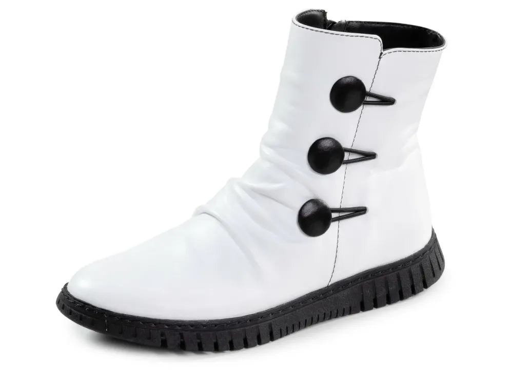 Gemini Stiefelette mit Raffung und dekorativen Knöpfen in Weiss und in Größe 36.