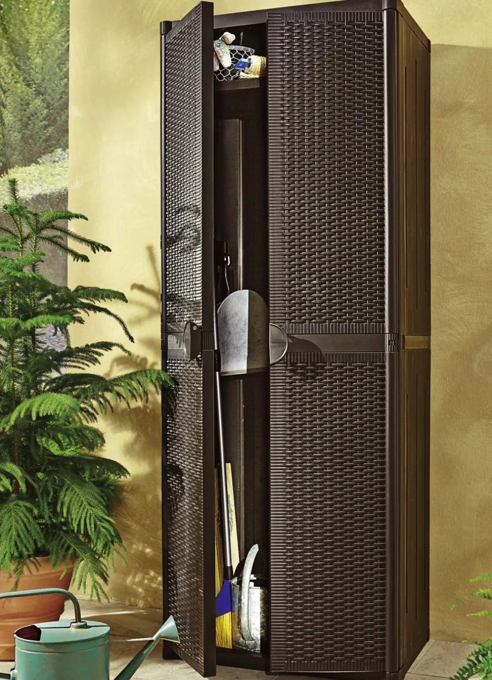 Dieser Geräteschrank schafft Ordnung in Garage, Keller oder Gartenhäuschen! Aus Kunststoff (100% PP). Mit Aufbau-Anleitung. Maße: je B65xT45 cm. Regenbeständig