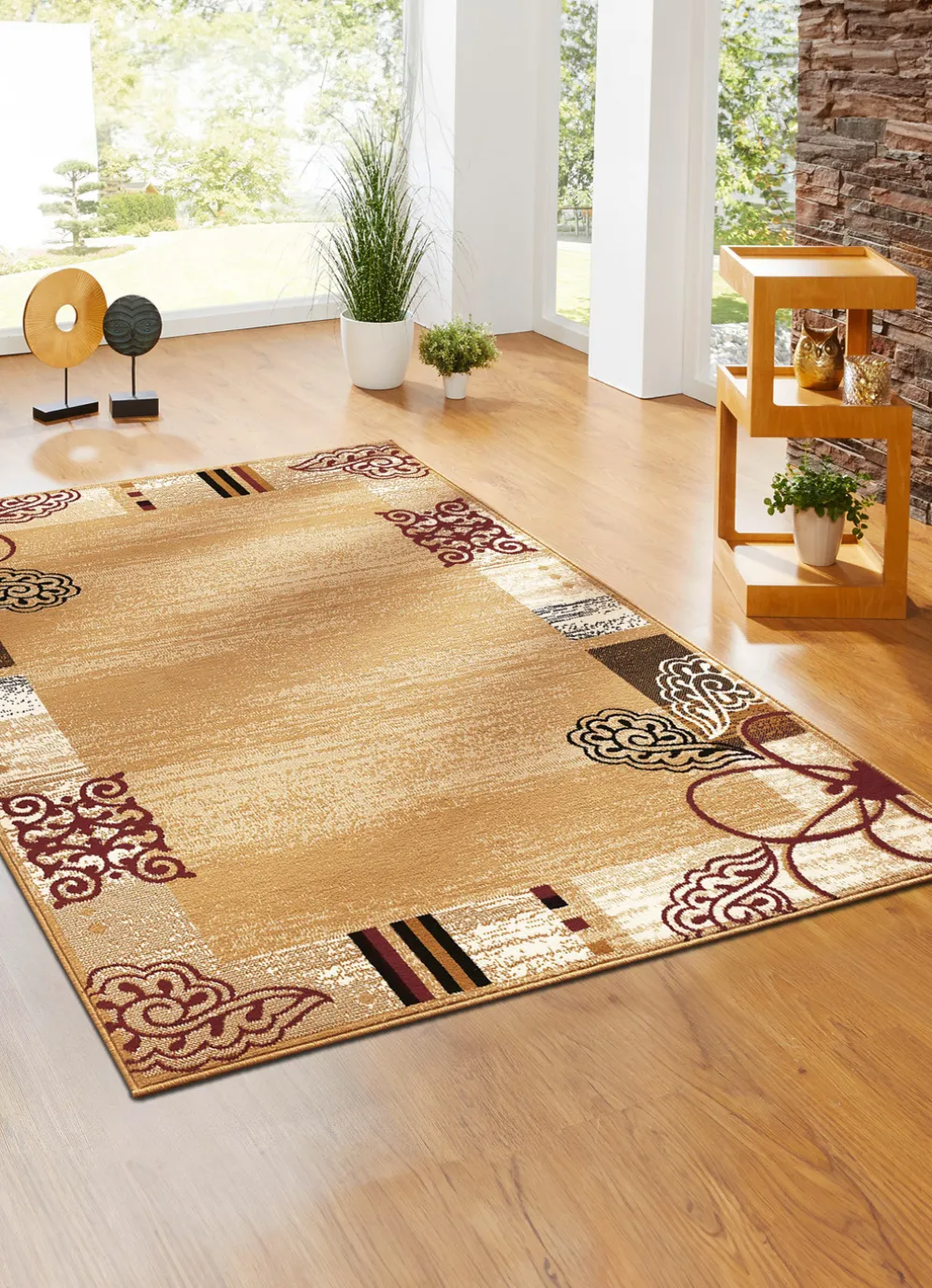 Gewebte Brücken und Teppiche mit sehr interessanter Bordüre, die in jeder der 3 attraktiven Farben ein höchst eindrucksvolles Erscheinungsbild abgibt. Florhöhe 7 mm. Die Qualität: 100% Polypropylen.