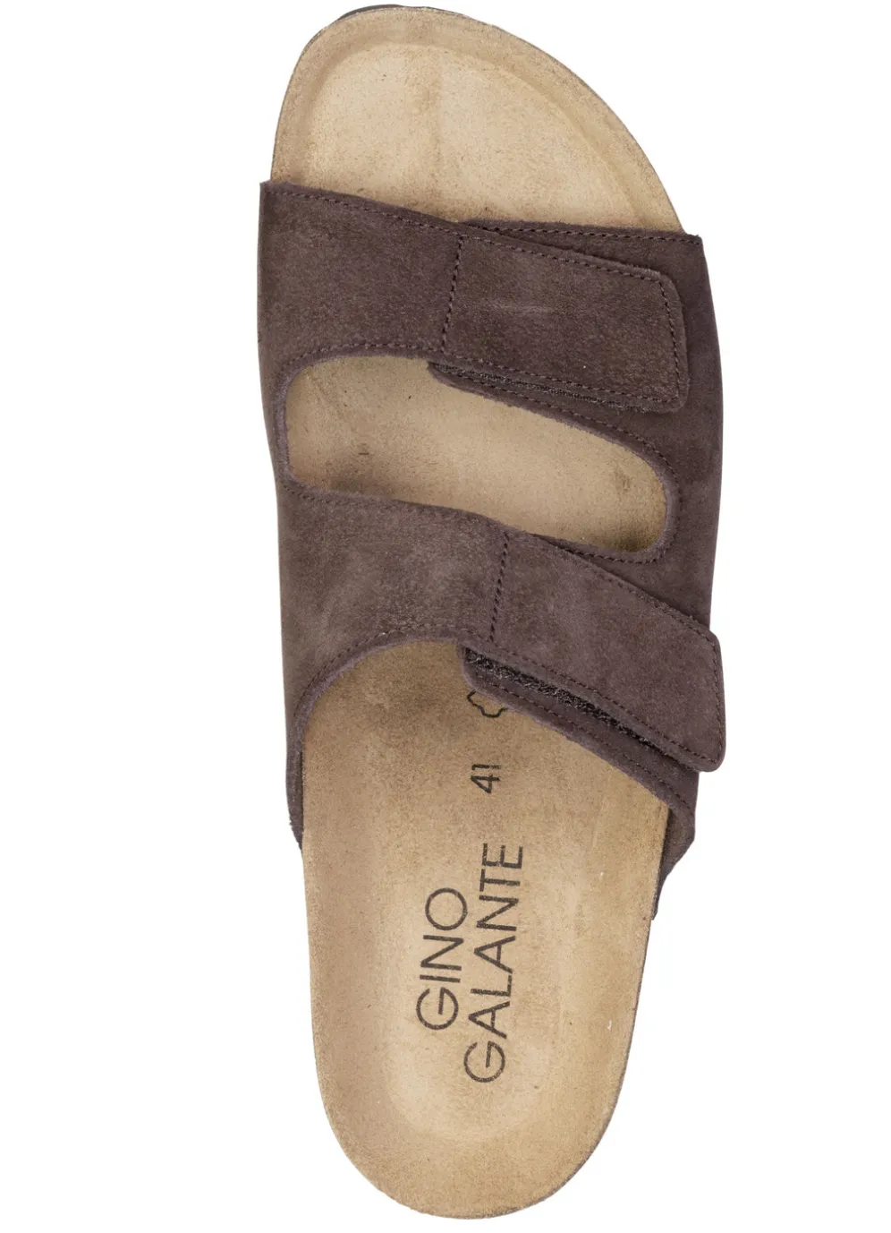 Pantoletten von GINO GALANTE, aus Veloursleder mit zwei verstellbaren Klettspangen: Weite H, gepolstertes Lederfußbett sowie leichte EVA-Profilsohle