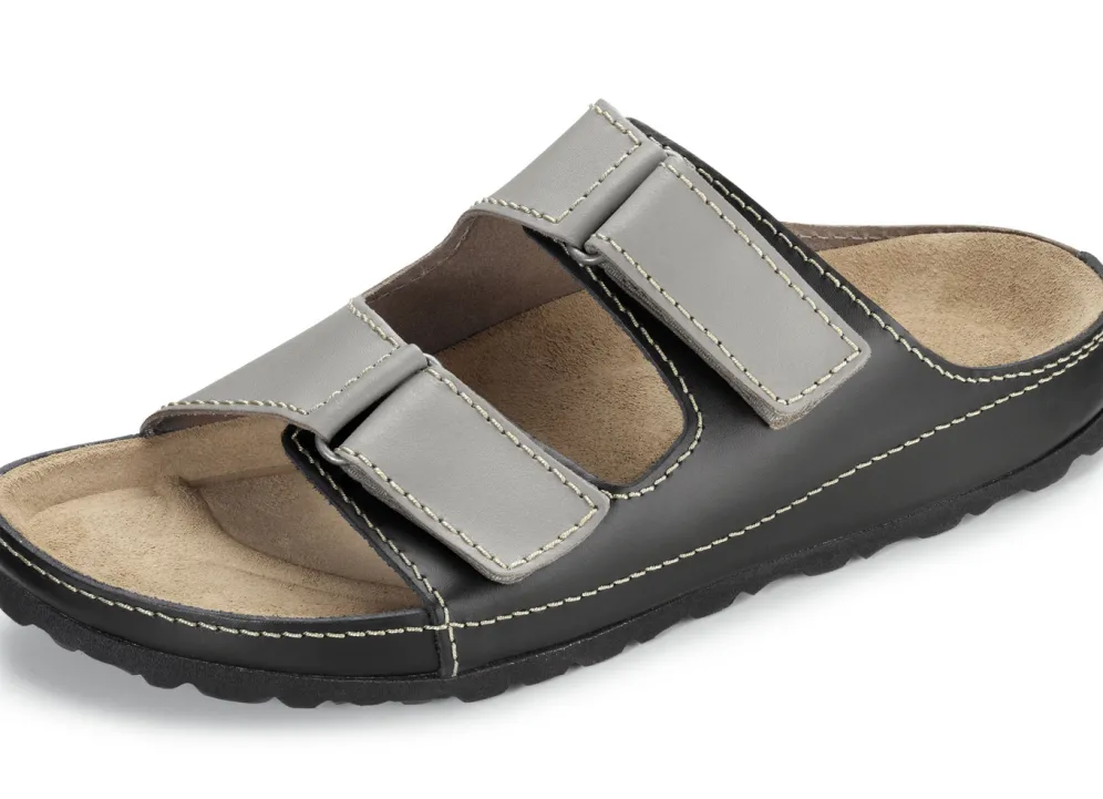 GINO GALANTE, klassische Herren-Pantoletten, aus Leder in Grau-Schwarz und in Größe 44.