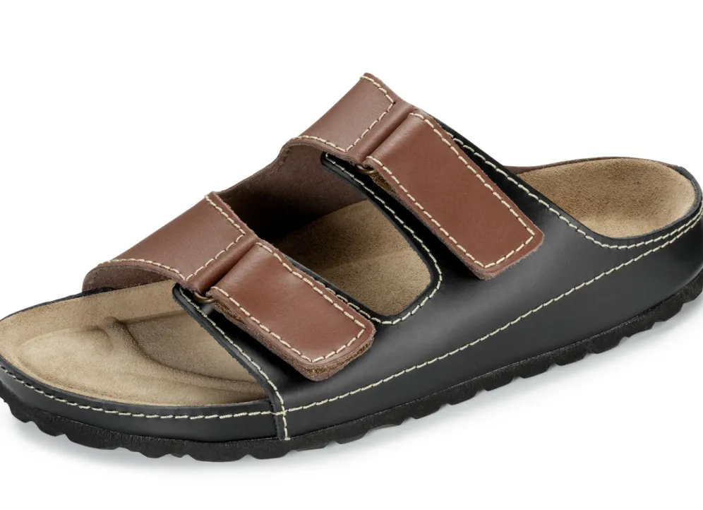 Pantoletten von GINO GALANTE, aus Rind-Nappaleder, mit zwei Klettspangen, gepolstertem Lederfußbett sowie superleichter EVA-Profilsohle