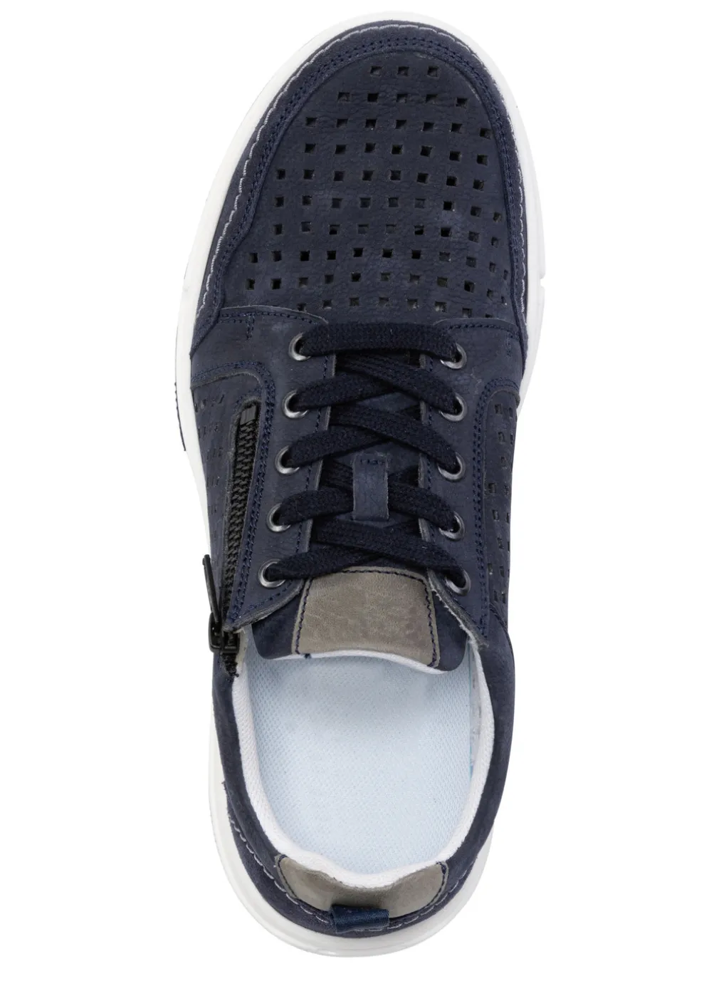 Schnürschuh von GINO GALANTE, aus luftig perforiertem Nubukleder mit Veloursleder-Besätzen: seitlicher Reißverschluss, Textilfutter, herausnehmbares Fußbett sowie Synthetiklaufsohle