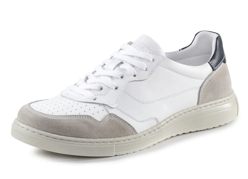 GINO GALANTE-Sneaker in Weiß-Grau-Blau aus Nappa- und Veloursleder, teilweise mit Zierlochung: Schnürung, Textilfutter, herausnehmbares Fußbett sowie leichte Synthetik-Laufsohle