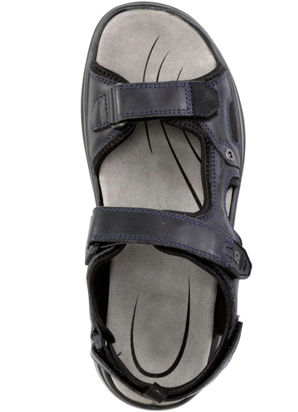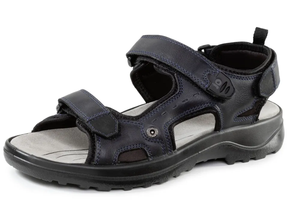 Trekking-Sandale von GINO GALANTE, in Dunkelblau-Schwarz, aus Nappaleder und Textilmaterial: Weite H, drei verstellbare Klettspangen, Textilfutter, gepolsterte Leder-Decksohle sowie leichte PUR-Luftpolster-Profilsohle