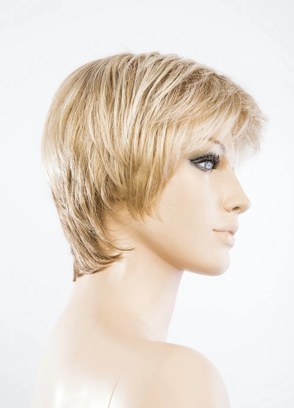 Mono- und Tressen-Verarbeitung: Im Oberkopfbereich wird ein feines, der Kopfhaut nachempfundenes Gewebe eingenäht, auf das die Kunsthaare in Handarbeit geknüpft werden. Das Haar wirkt dadurch wie aus der Kopfhaut natürlich gewachsen. Sehr hoher Tragekomfort für Frauen ohne Eigenhaar.