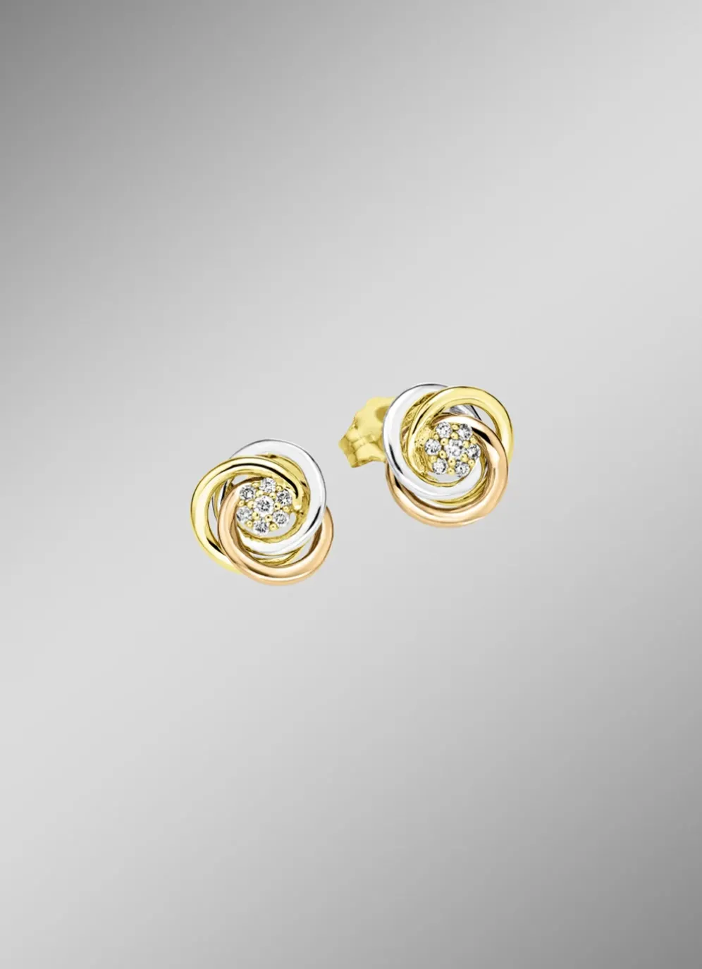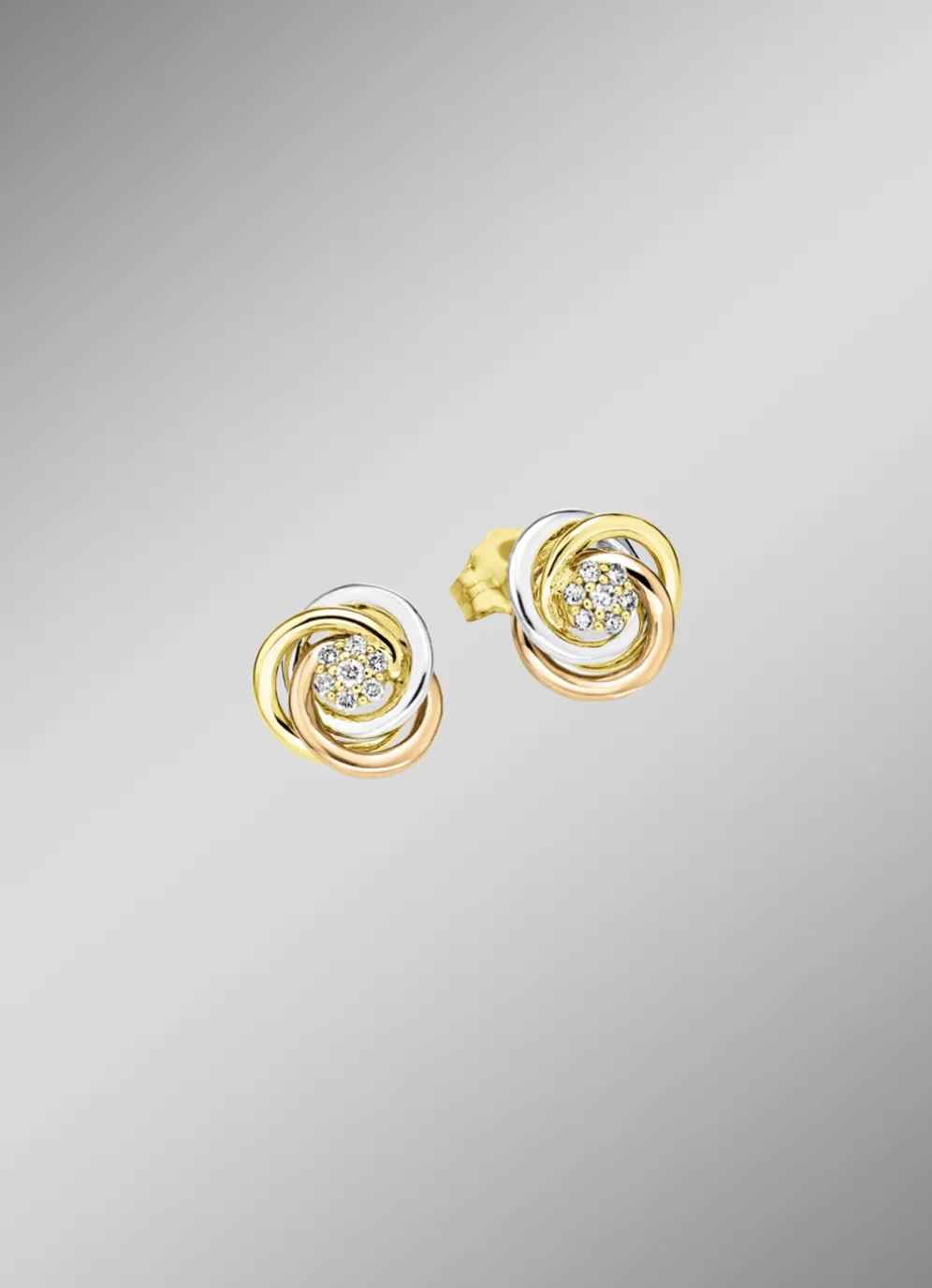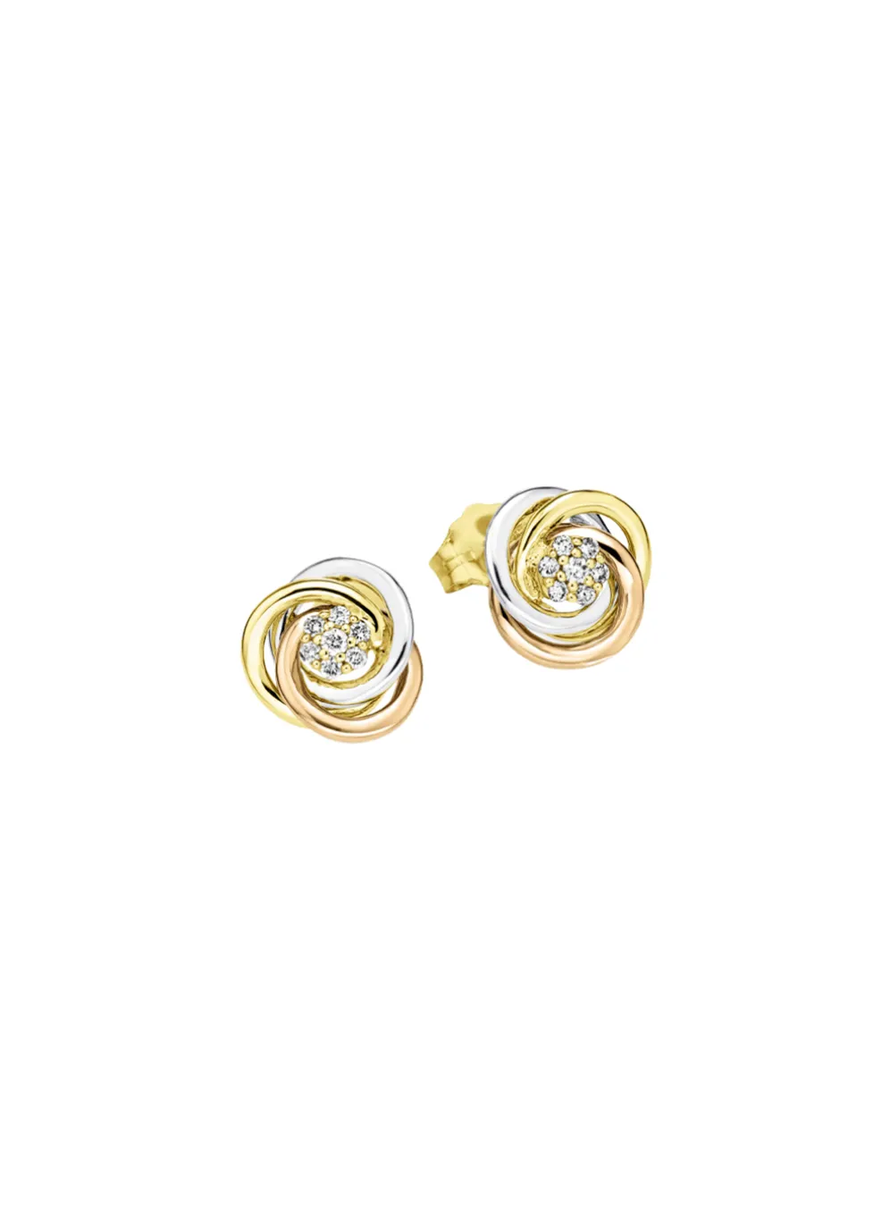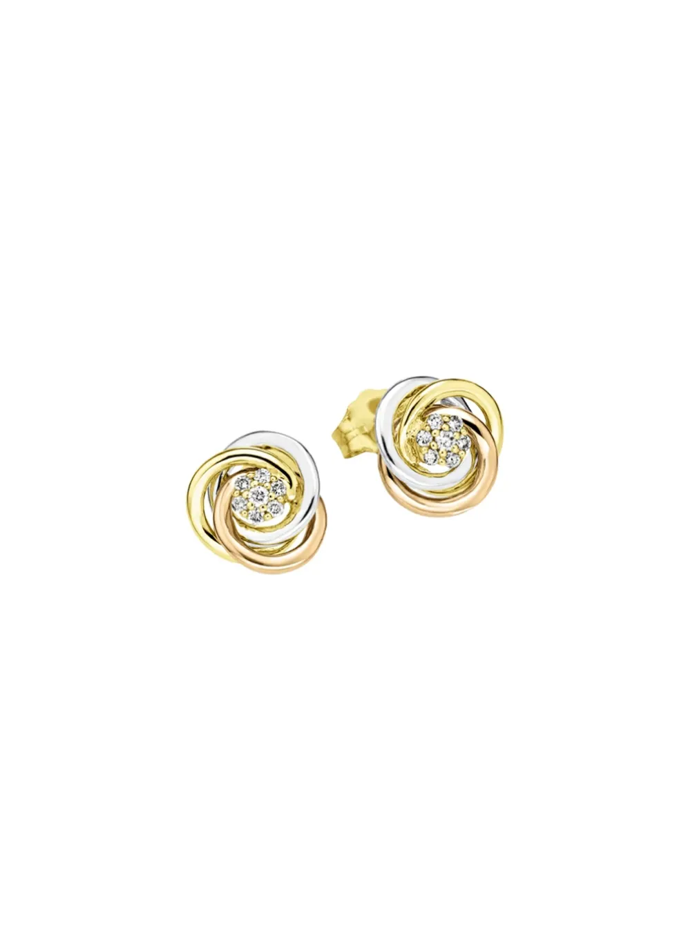 Glänzende Ohrstecker in Tricolor mit 14 Brillanten in der Legierung Gold 585/- fein.
