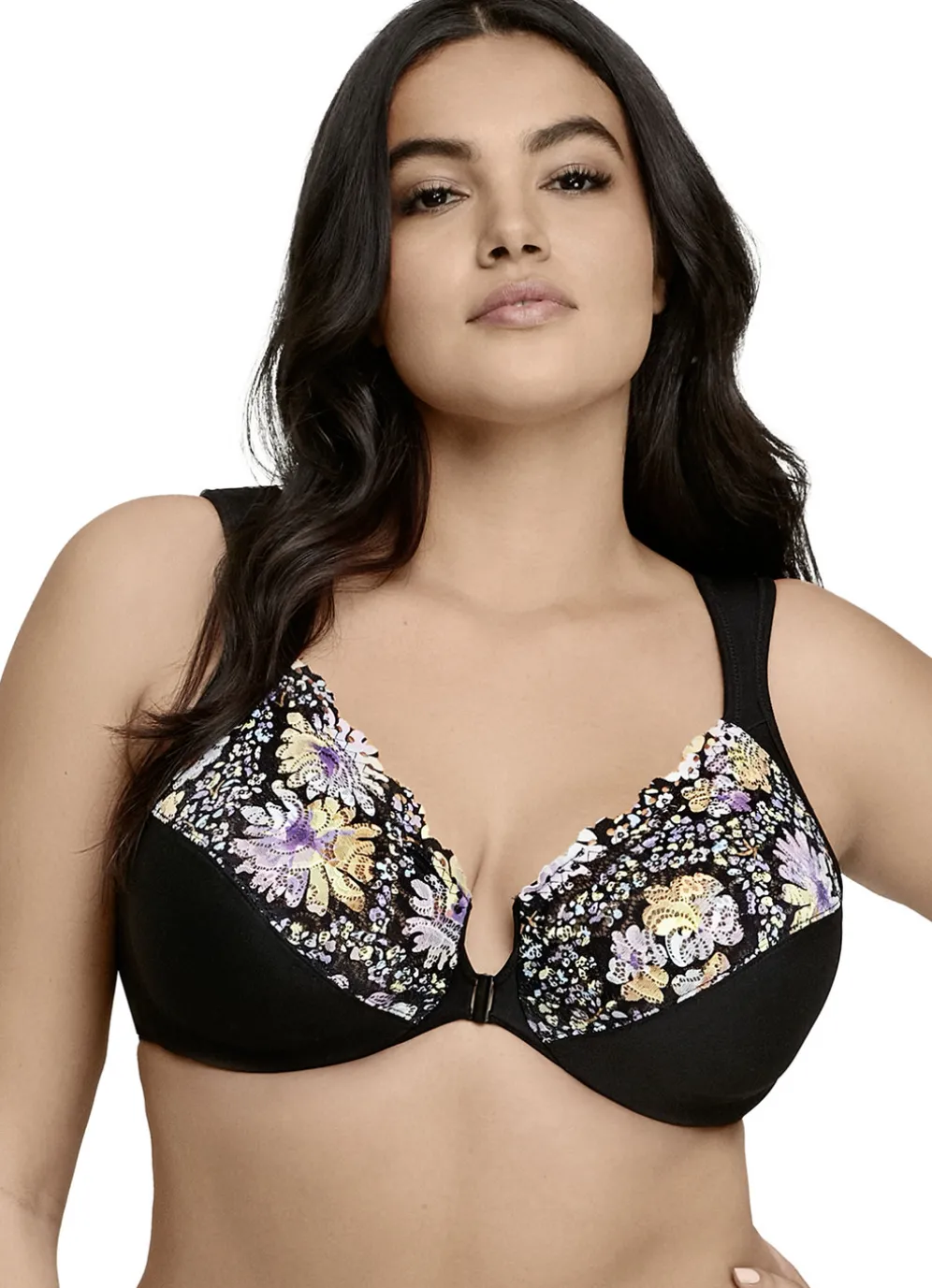 Glamorise Bügel-BH mit Floraldessin in Cup D, in Schwarz-Bunt sowie in Größe 80.
