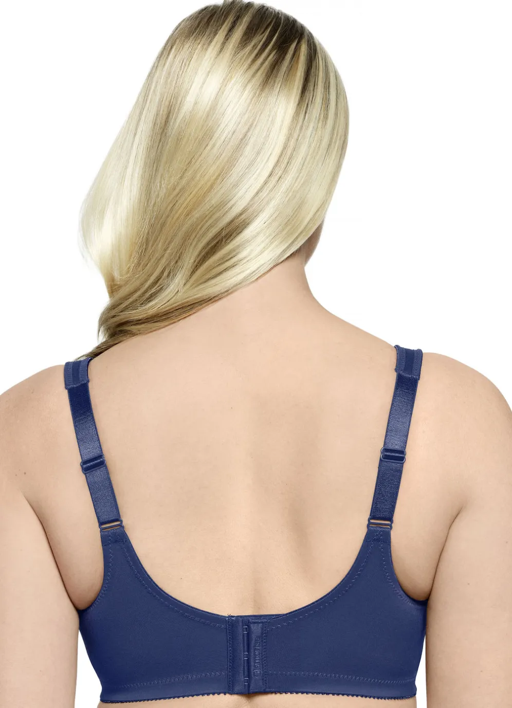Minimizer-BH von „Glamorise“, mit Elastikspitze in den Obercups, über Kreuz gearbeiteten, gepolsterten „MagicLift®“-Bändern sowie im Schulterbereich weich gepolsterten, verstellbaren Stretchträgern.