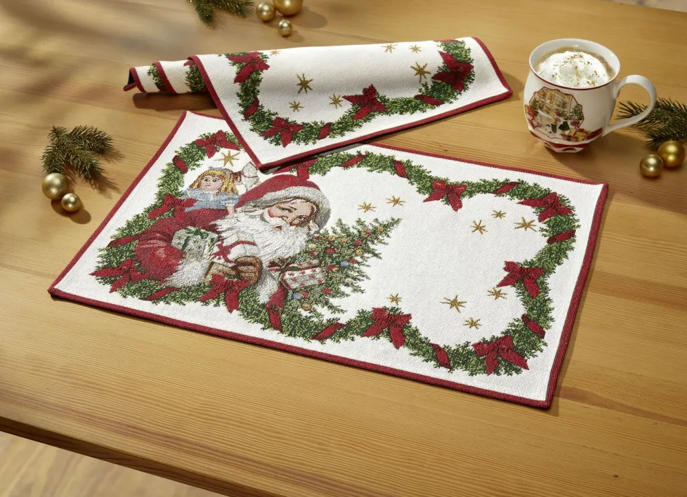 Diese Gobelin-Tischserie aus dem Hause Villeroy & Boch verleiht Ihrer weihnachtlichen Tafel einen besonderen Charme und setzt festliche Design-Akzente. Mit Weihnachtsmann-Motiv. Waschbar bis 40 °C. Material aus 70% Baumwolle, 30% Polyester.