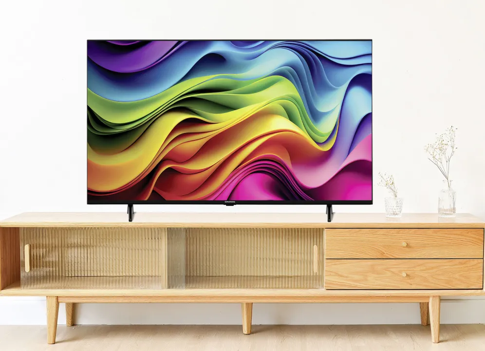 Grundig GUB7440Q 4K-UHD-Smart-QLED-Fernseher mit Bildschirmdiagonale von 126 cm/50 Zoll und in Schwarz.