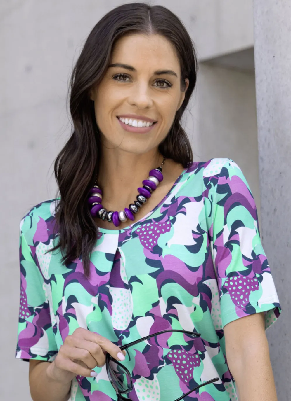 Diese Halskette mit großen, auffälligen Schmuckperlen in Violett und Silberfarben ist ein echter Hingucker und kann jedes Outfit aufwerten. Die Kombination aus kugelförmigen und scheibenförmigen Schmuckelementen aus Kunststoff bietet eine interessante Textur und ein modernes Design. Der Karabiner sorgt für eine sichere Befestigung und einfaches Anlegen der Kette. Mit einer Länge von 47 cm und einer zusätzlichen Verlängerung von 7 cm lässt sich die Kette ideal an verschiedene Ausschnittformen und Stile anpassen.