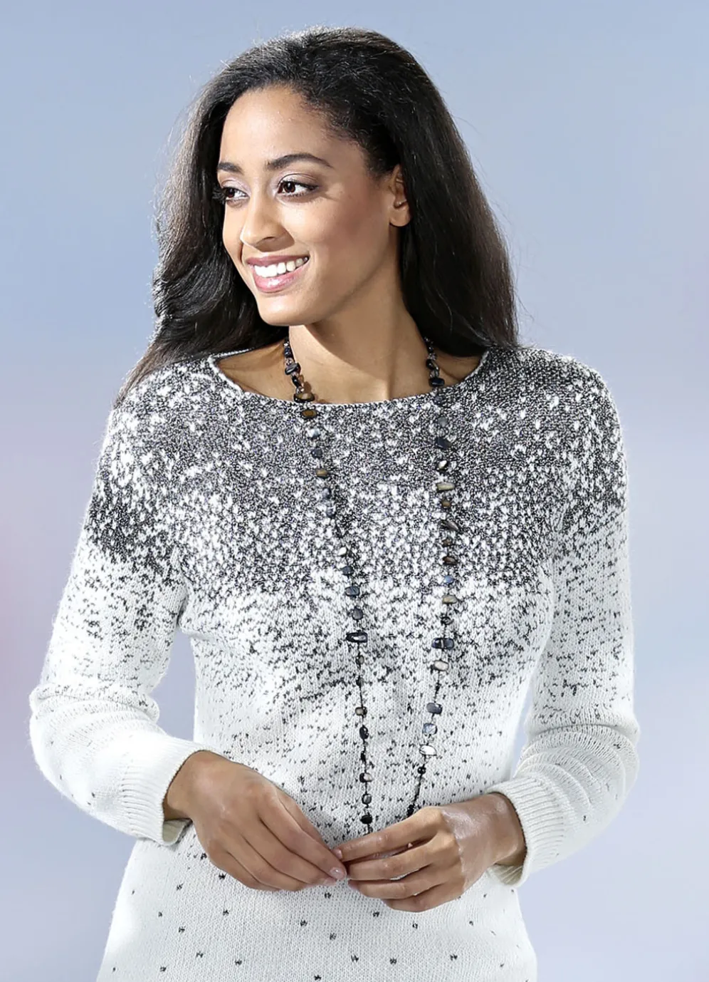 Halskette mit Muschel und Kristallsteine in Grau.