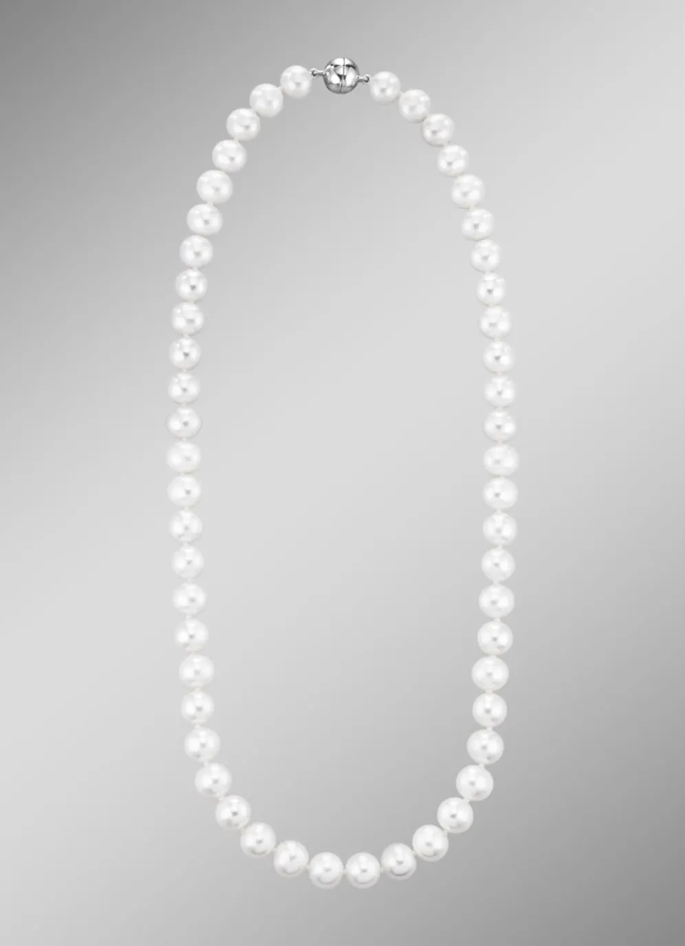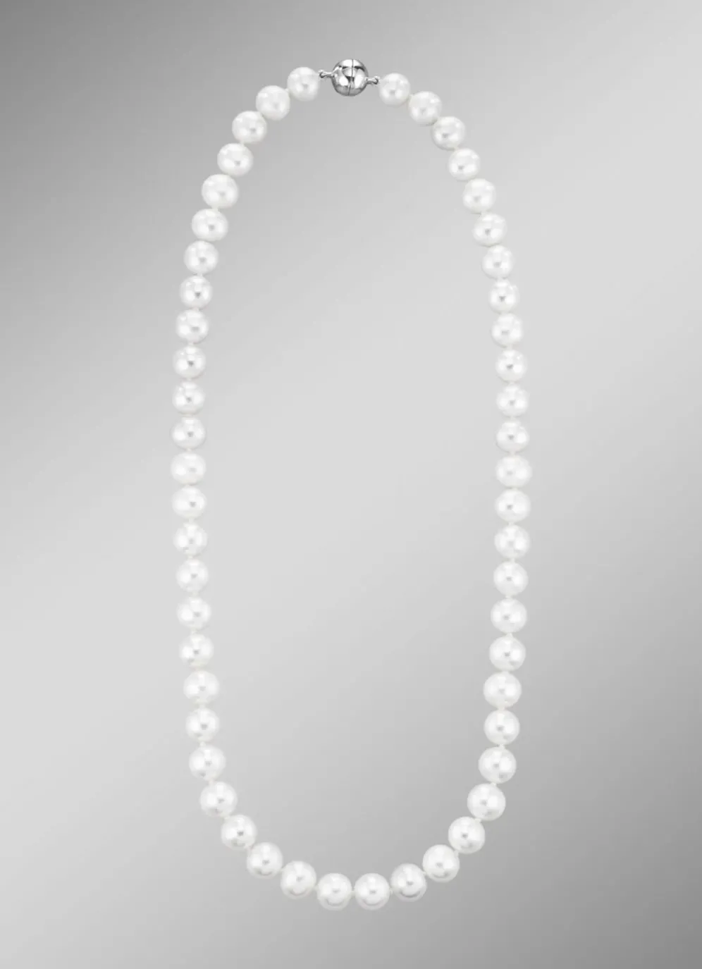 Diese hochwertige Halskette besteht aus wunderschönen Süßwasser-Zuchtperlen mit einem Durchmesser von 8-9 mm, oder 6–7 mm. Das edle Schmuckstück verfügt über eine praktische Magnetschließe. Die Perlen wirken besonders elegant und passen zu jeder stilbewussten Frau.