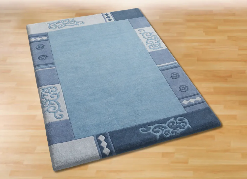 Handgetuftete Brücken, Teppiche und Bettumrandungen in Größe 103 (Brücke, 60×90 cm) und in Blau.
