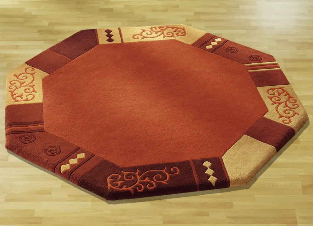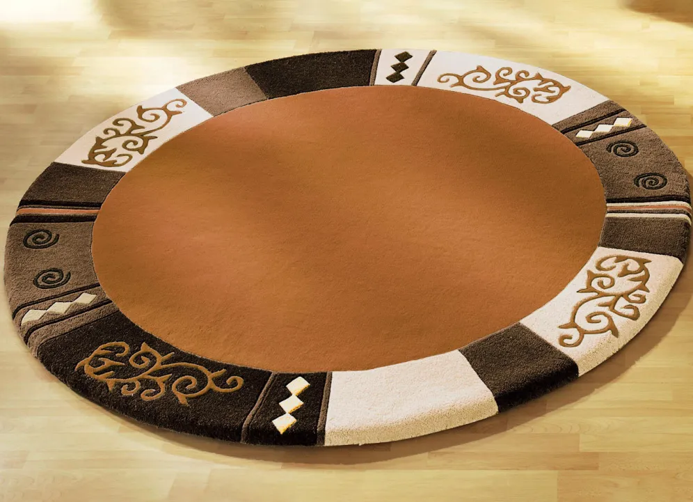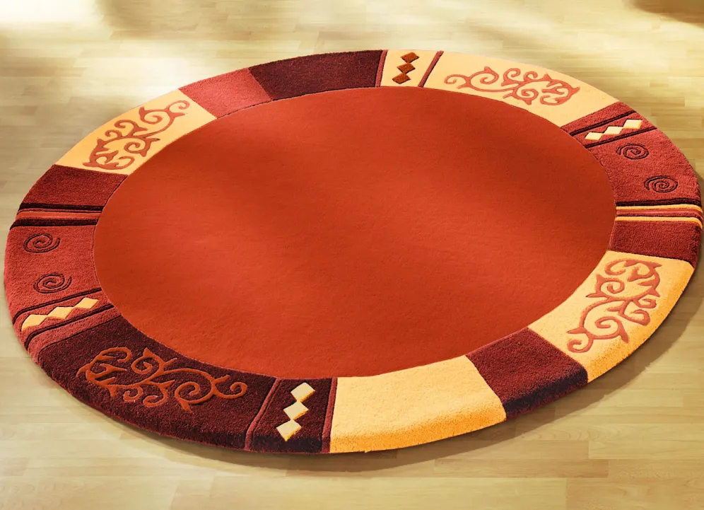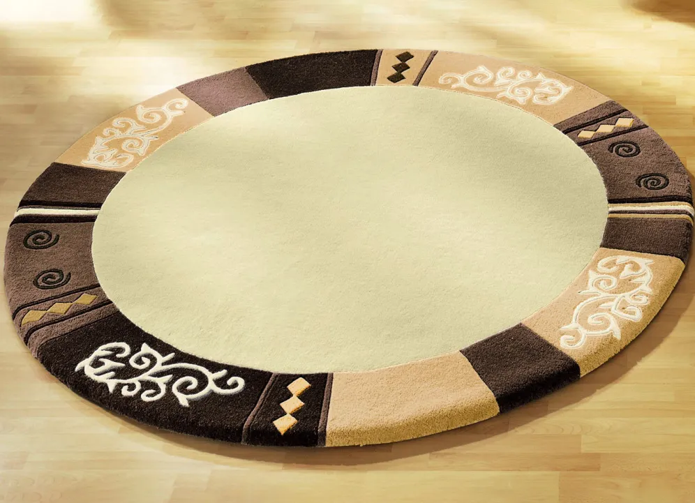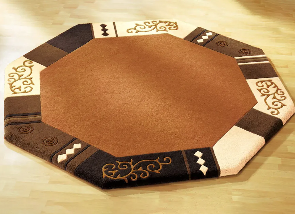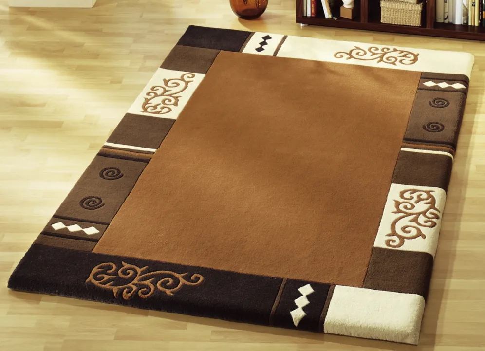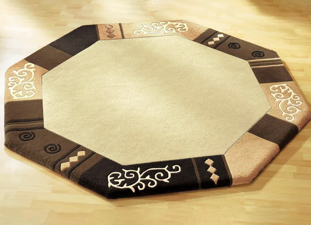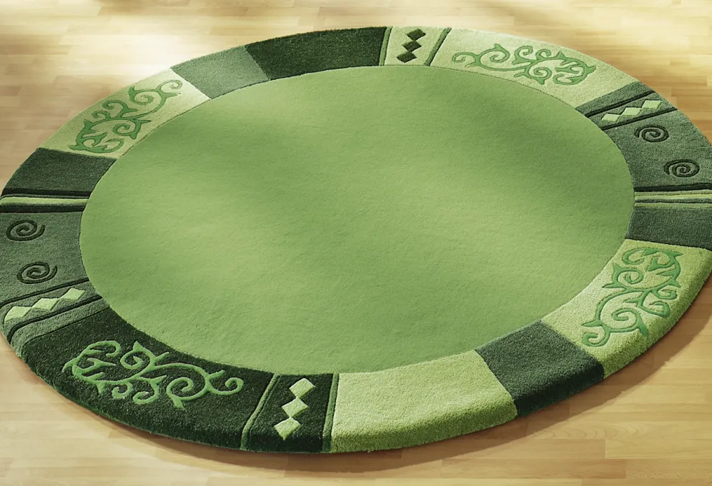 Handgetuftet: Der Flor des Teppichs wird von Hand mit Nadeln auf das Grundgewebe aufgebracht. Die Verankerung erfolgt durch eine nachträgliche Beschichtung der Rückseite. Danach werden die Konturen aufwendig herausgearbeitet.