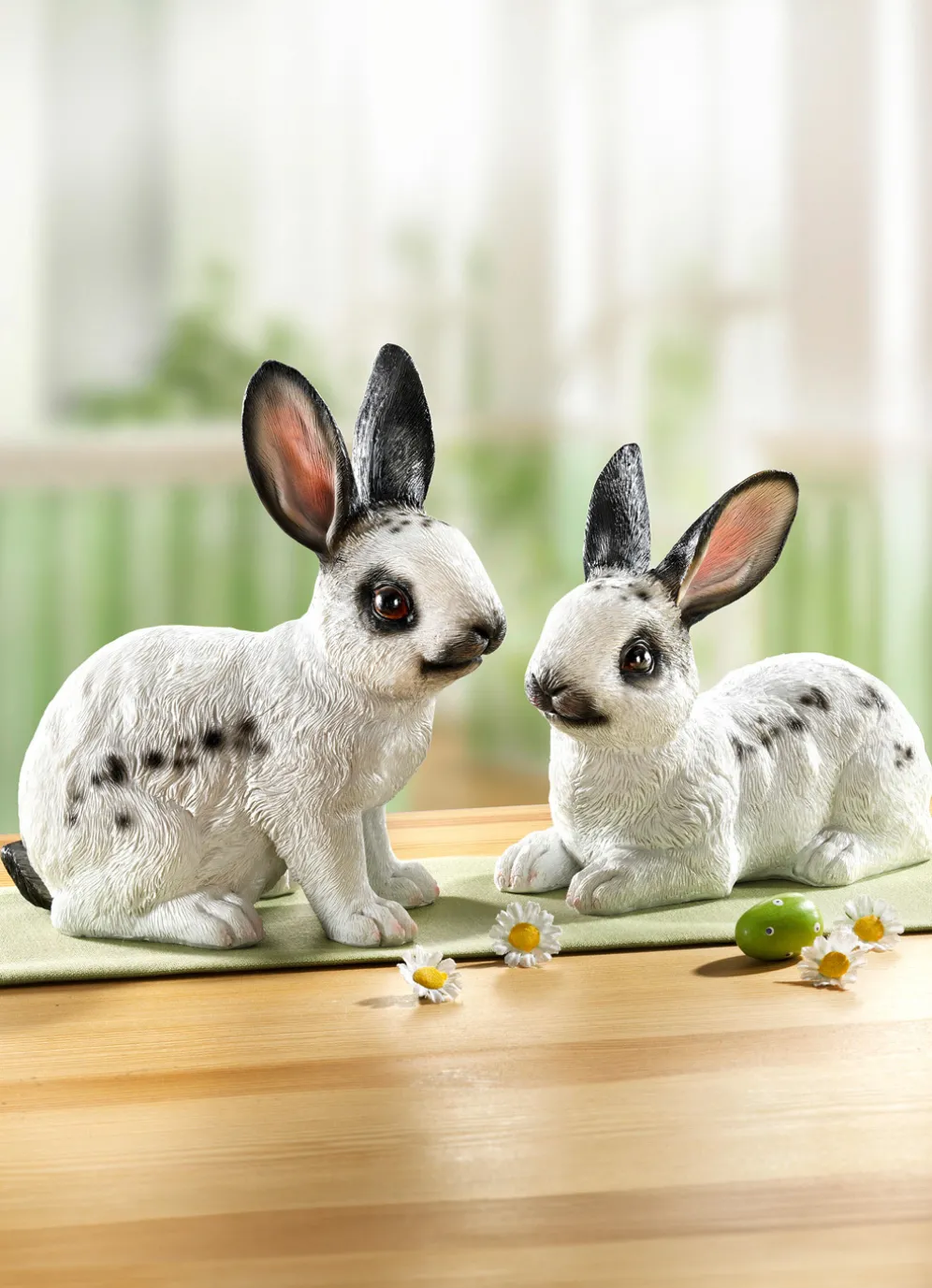 Diese putzigen Häschen im 2er-Set sind einfach zum Verlieben! Sie wurden täuschend echt aus Polyresin gefertigt und detailliert von Hand bemalt.