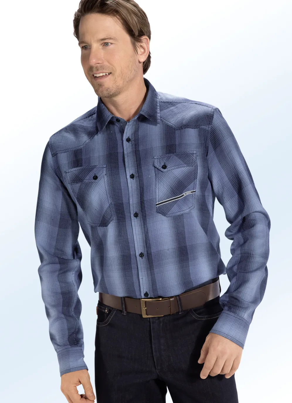 Markant kariertes Hemd: Brustpattentaschen mit Knopfverschluss, bedruckter Schriftzug auf linker Brusttasche, Ärmelschlitzbesatz mit extra Knopf, abgeschrägte Manschetten mit Verstellknopf sowie Rückenpasse.