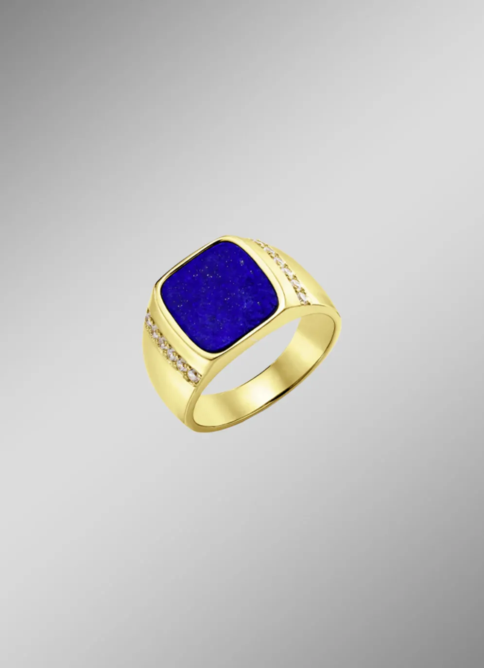 Herrenring mit Lapislazuli und Zirkonia in der Legierung Silber 925/- fein und in Größe 180.