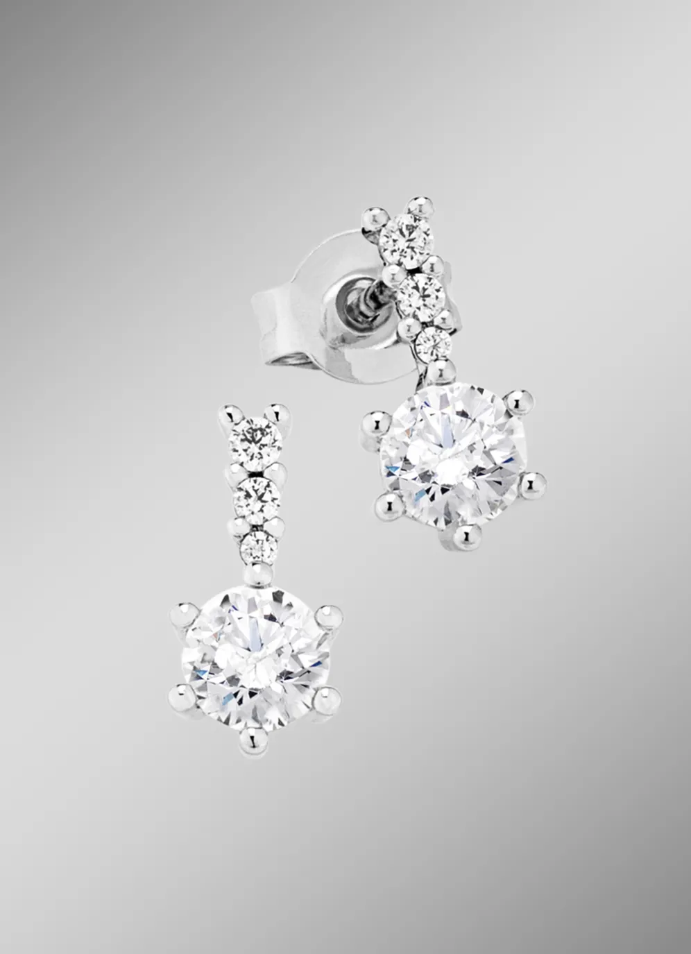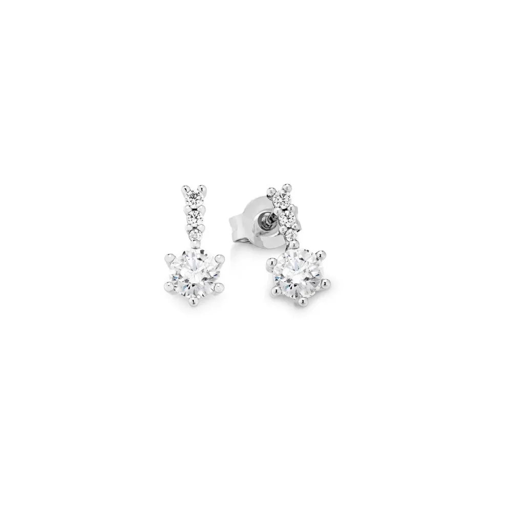 Hochglänzende Ohrstecker mit synth. Zirkonia in der Legierung Weißgold 333/- fein.