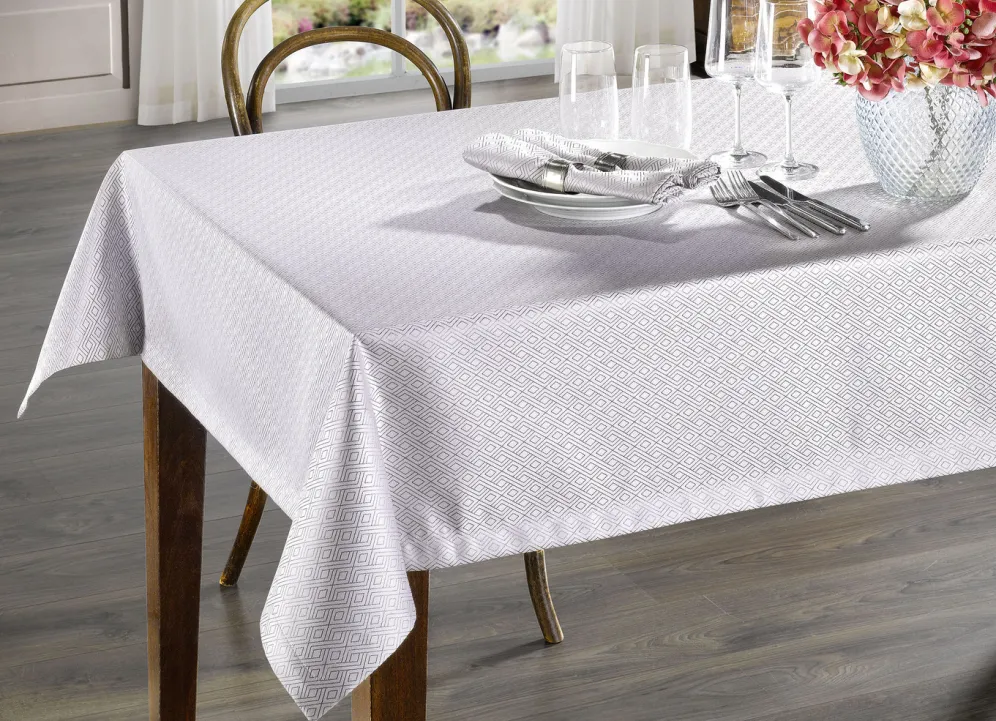 Diese hochwertige und edle Damast-Tischdekoration ist ein schmückendes Highlight für jedes Zuhause! Bügelleichte Halbzwirn-Qualität: 59% mercerisierte Baumwolle und 41% Polyester.
