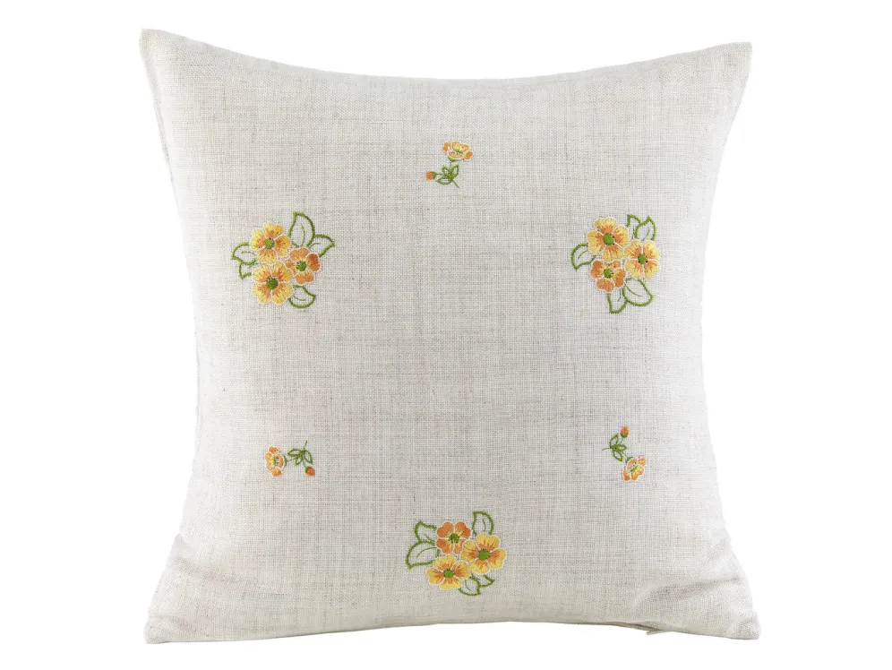 die mit echter Plauener Spitze und detailreichen Stickereien verziert ist. Kissenbezug mit Reißverschluss. Qualität: Leinenoptik aus 85% Polyacryl und 15% Leinen. Waschbar bis 30 °C (Schonwäsche).